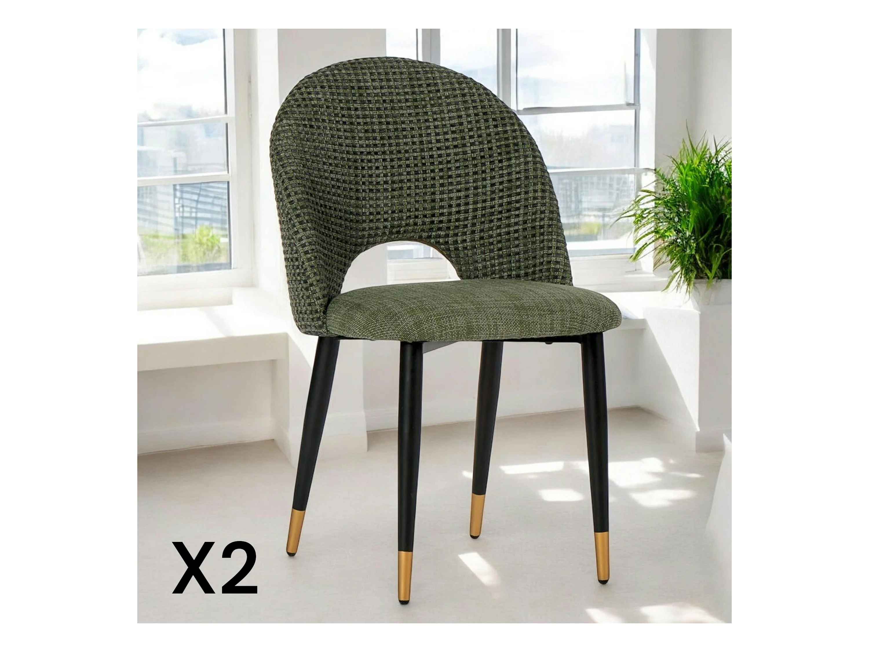 Chaise salle à manger tissu quadrillé kaki (lot de 2) MALMOE