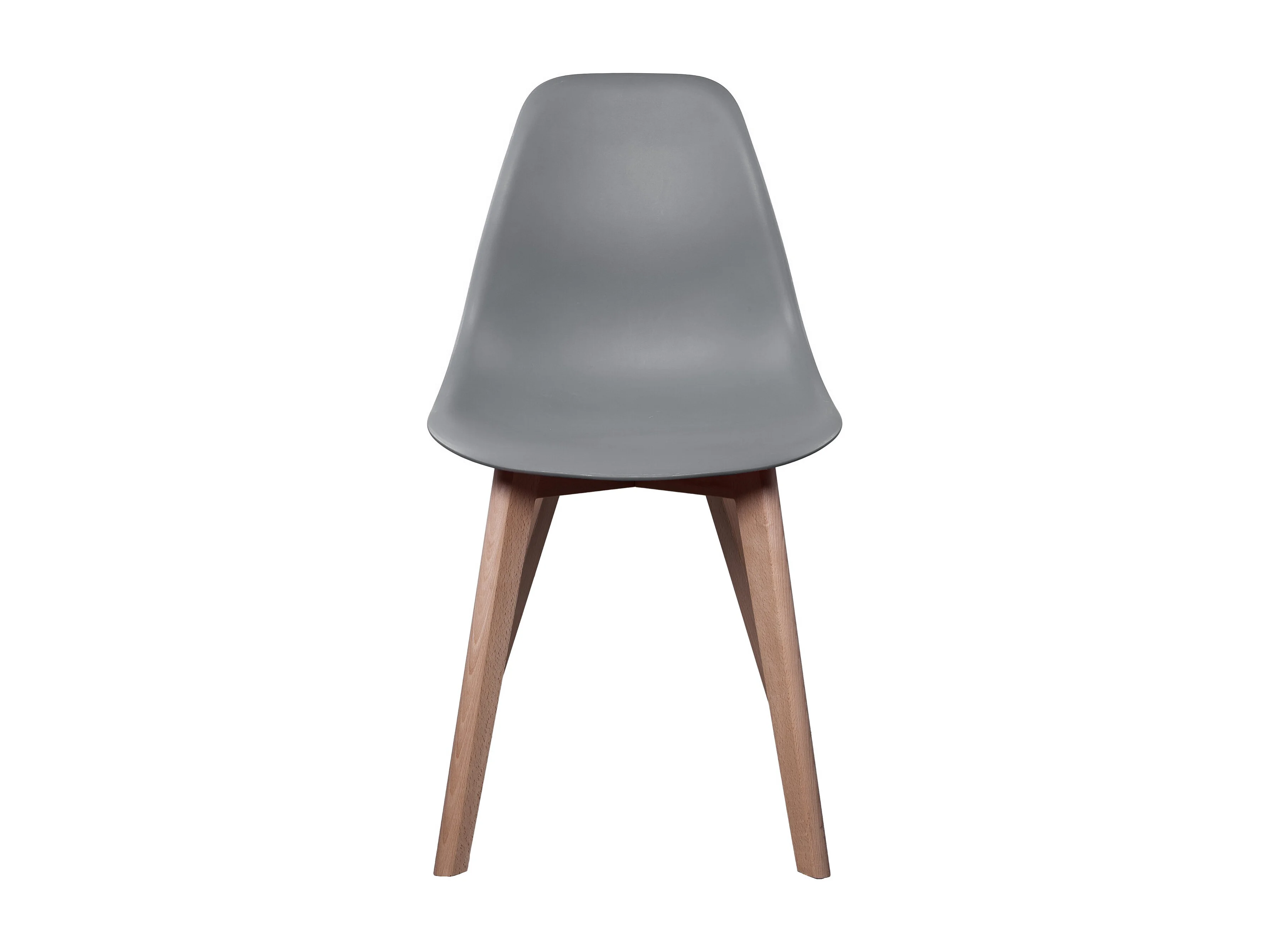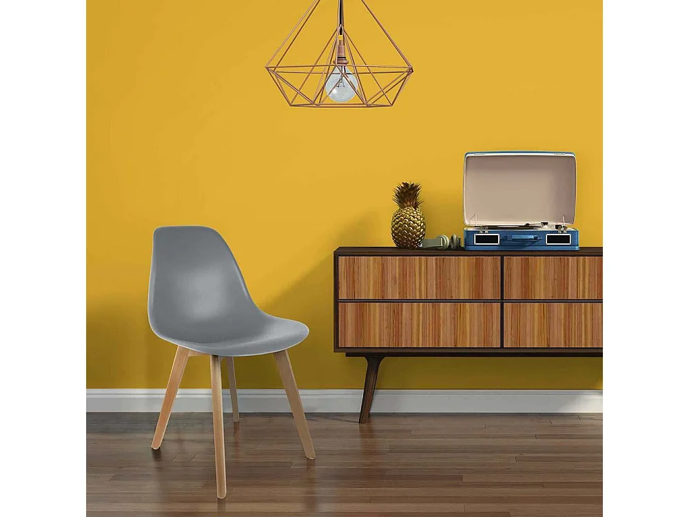 Lot 2 chaises de cuisine scandinaves siège plastique souple pieds bois hêtre clair NAO (gris)