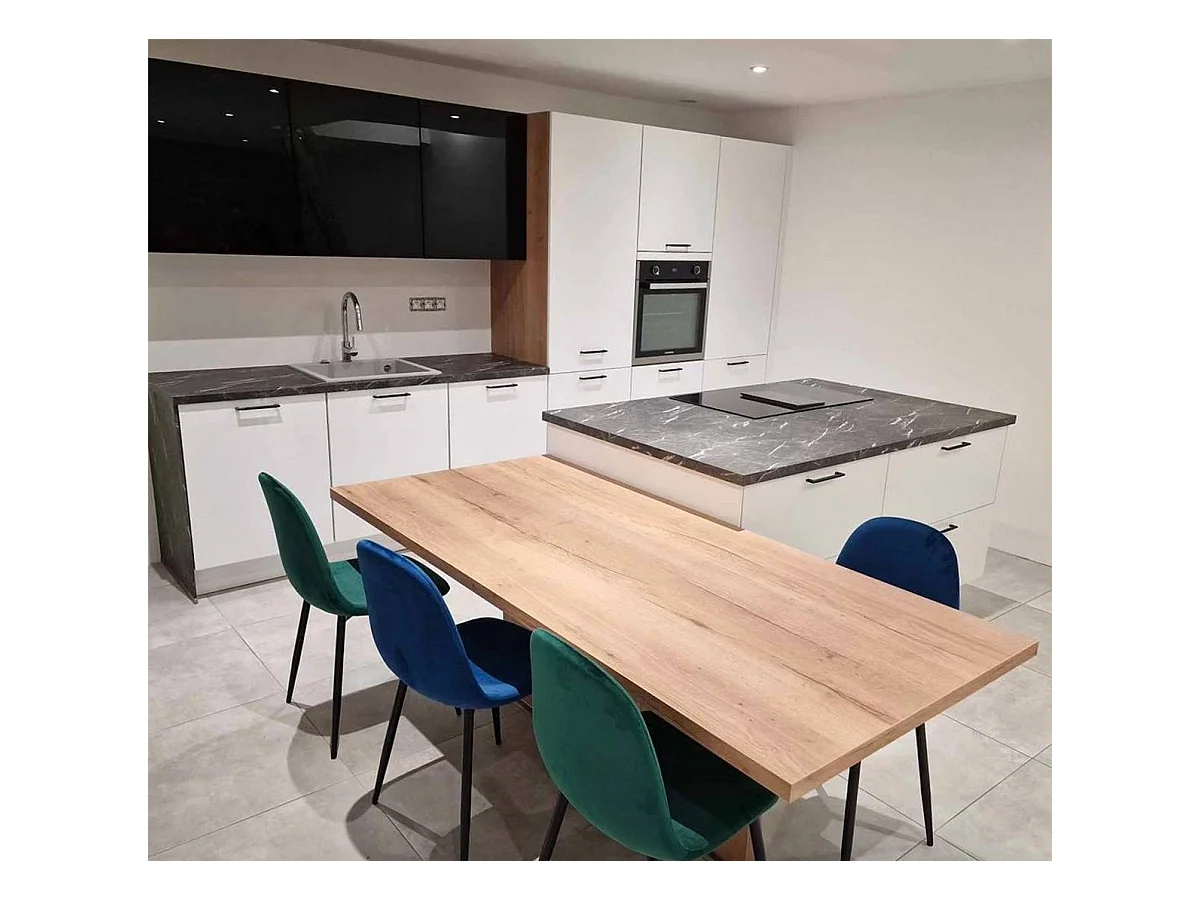 Habitat - Table rectangulaire extensible en céramique et pied finition chêne - Blanc - Linka