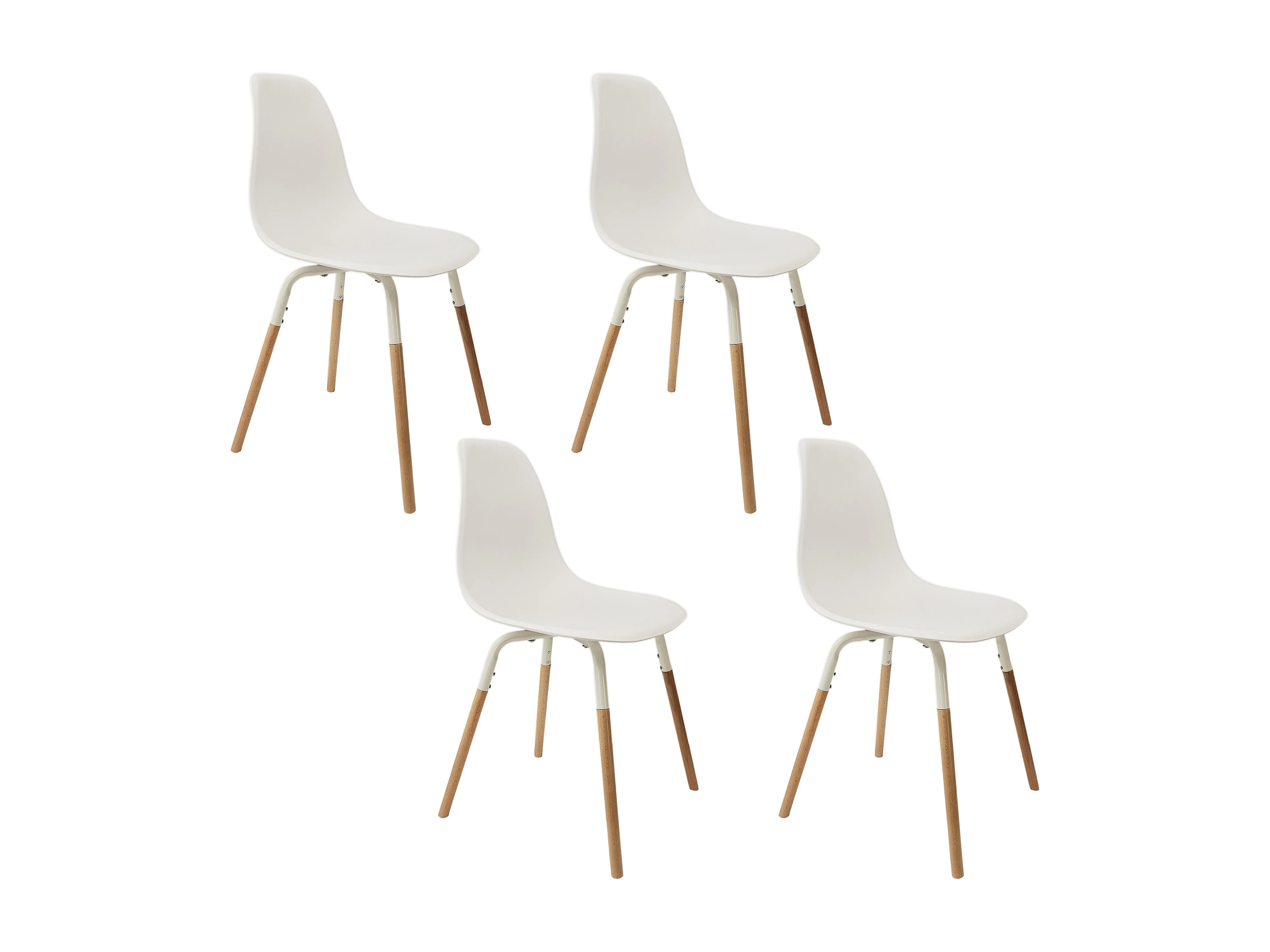 Lot 4 chaises scandinaves de cuisine siège plastique souple pieds bois clair OVA (Blanche)