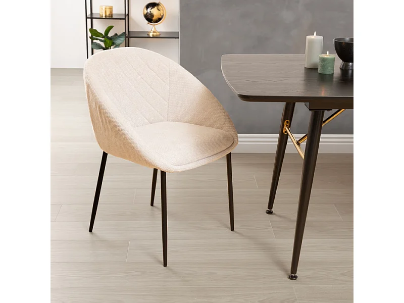 Chaise en tissu doux beige avec pieds en métal noir - GLORIA