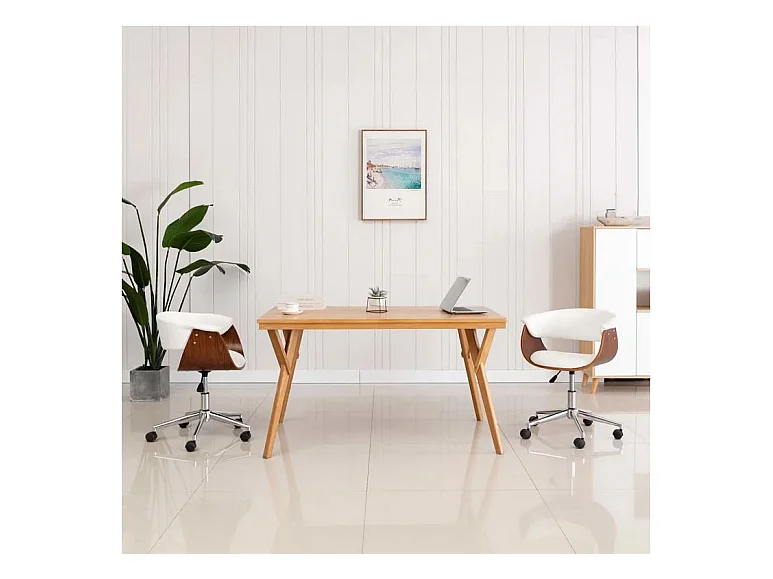 Chaise simili cuir blanc et bois foncé Tessa - Lot de 2
