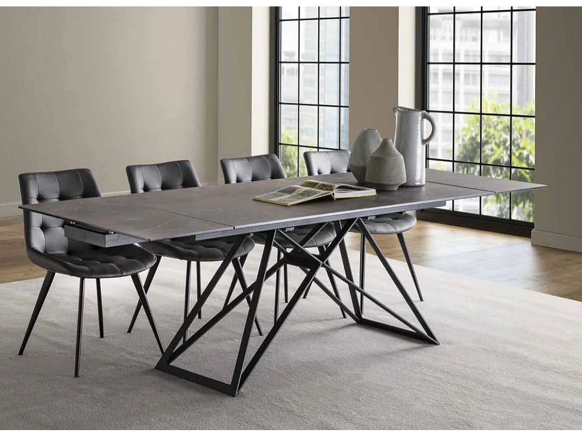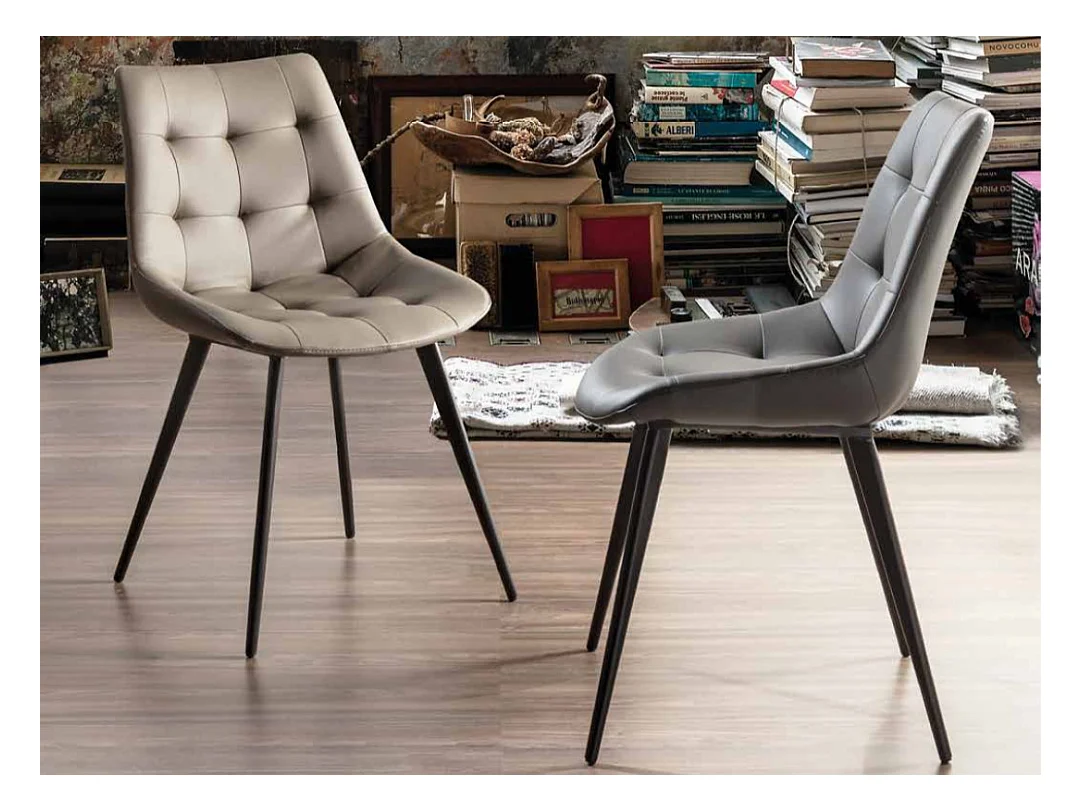 Chaise simili cuir capitonnée et pieds métal noir laqué Kozy - Lot de 2-Modéle Faux cuir gris