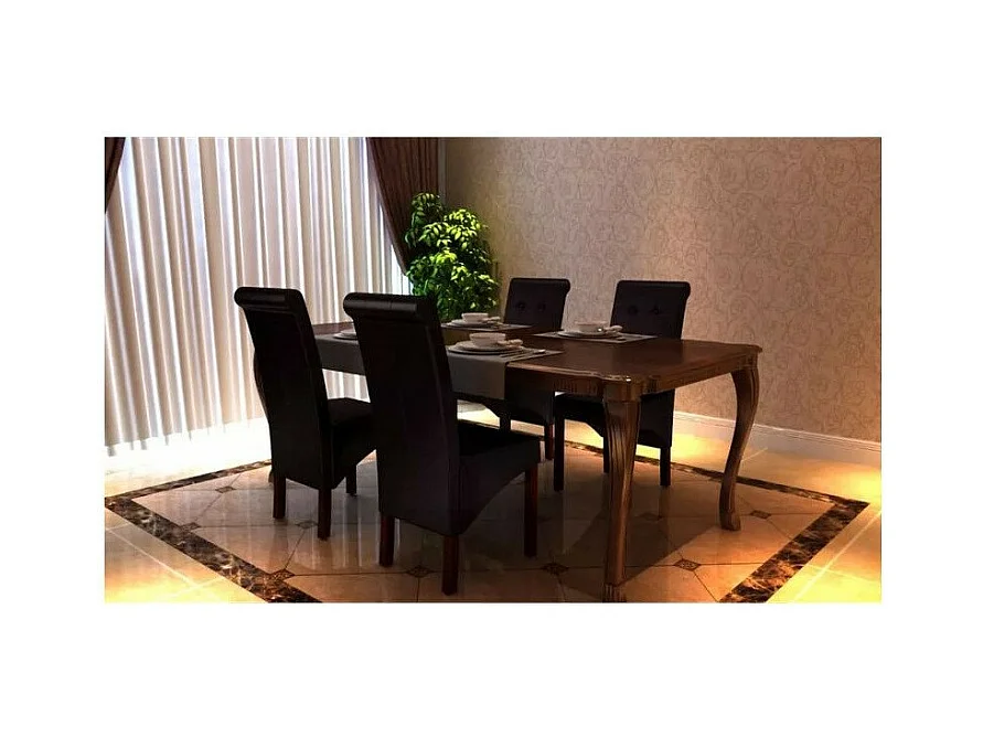 Chaise simili cuir marron et pieds bois massif Zinar - Lot de 4