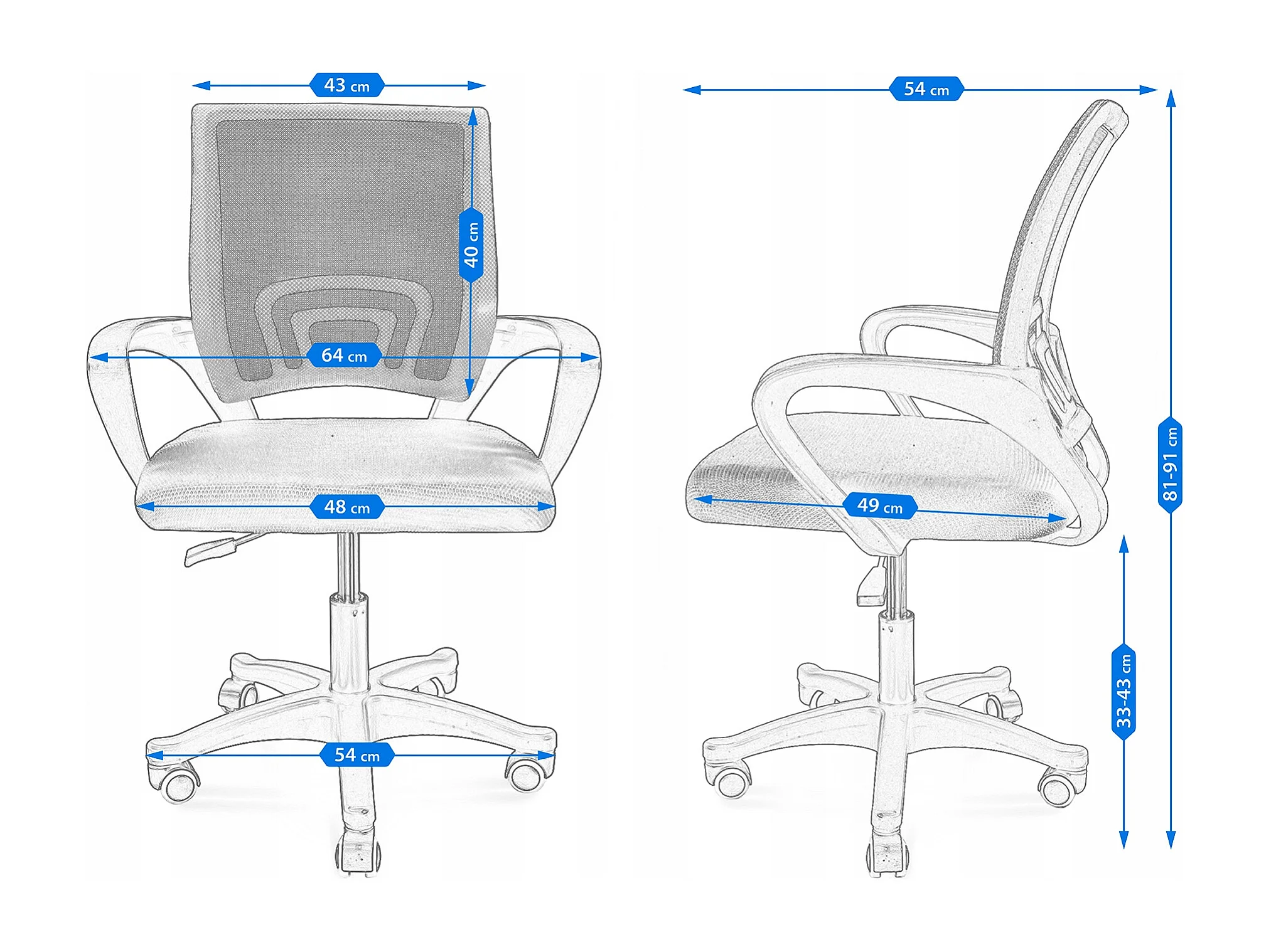Chaise de bureau ergonomique, réglable en hauteur, avec accoudoirs, PVC, noir (52.5x54x99 cm)