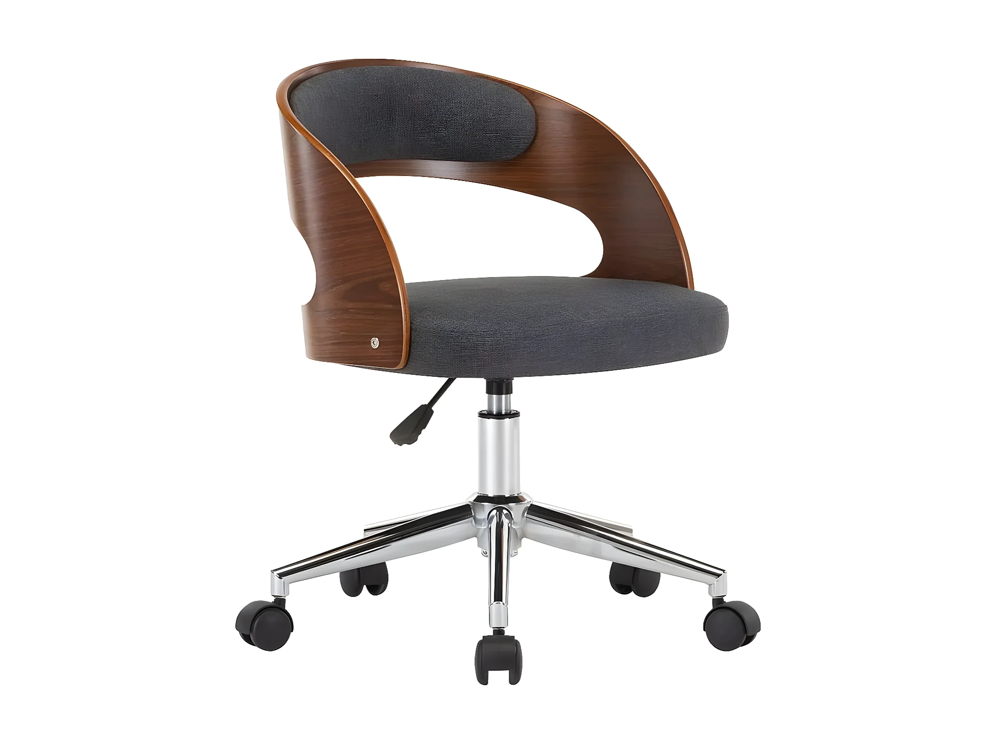 Chaise sur roulettes tissu gris et bois foncé Esinn - Lot de 2
