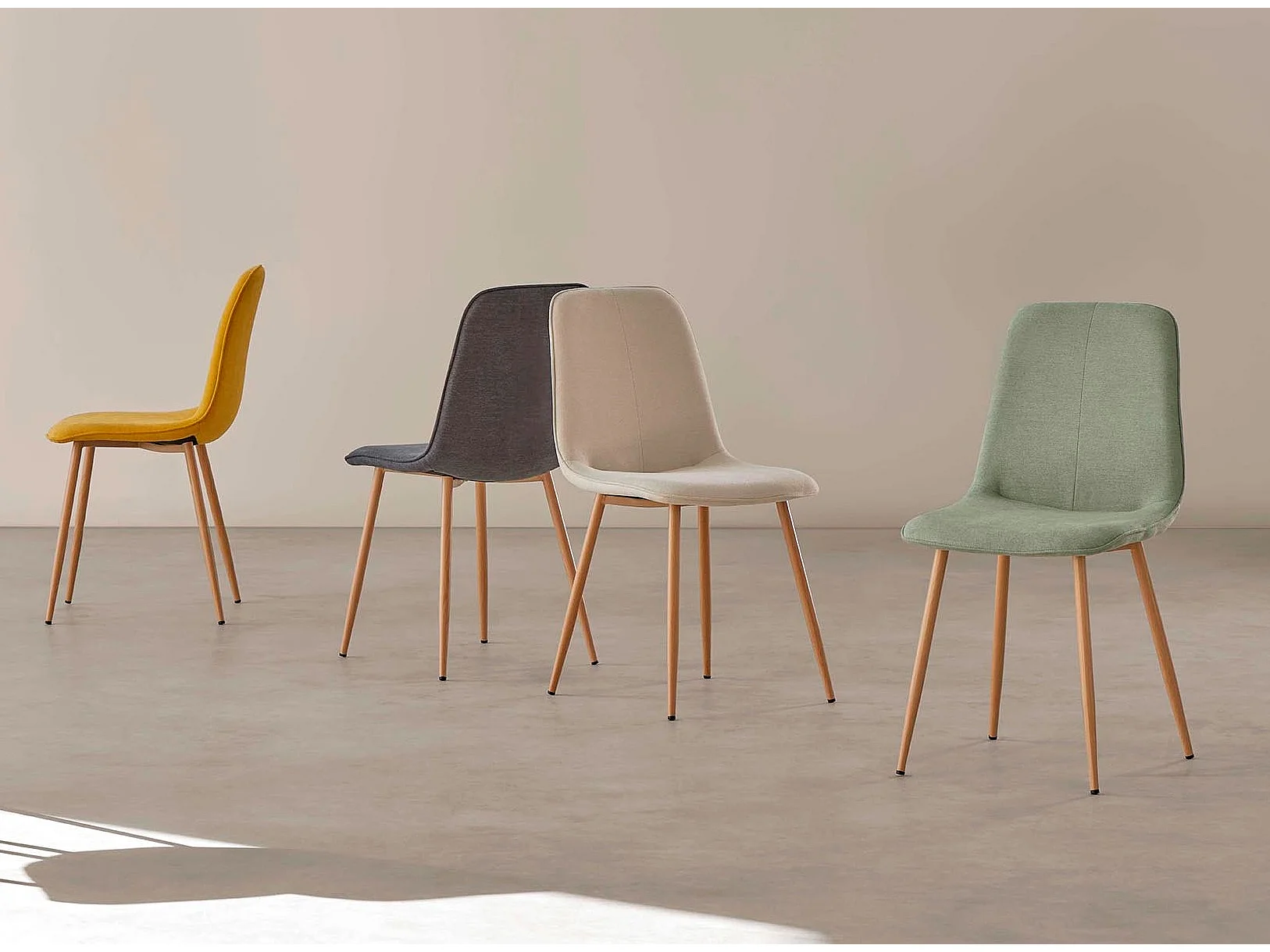 Chaise Klory - Tissu confortable et pieds métal éffet bois naturel-Couleur Gris clair