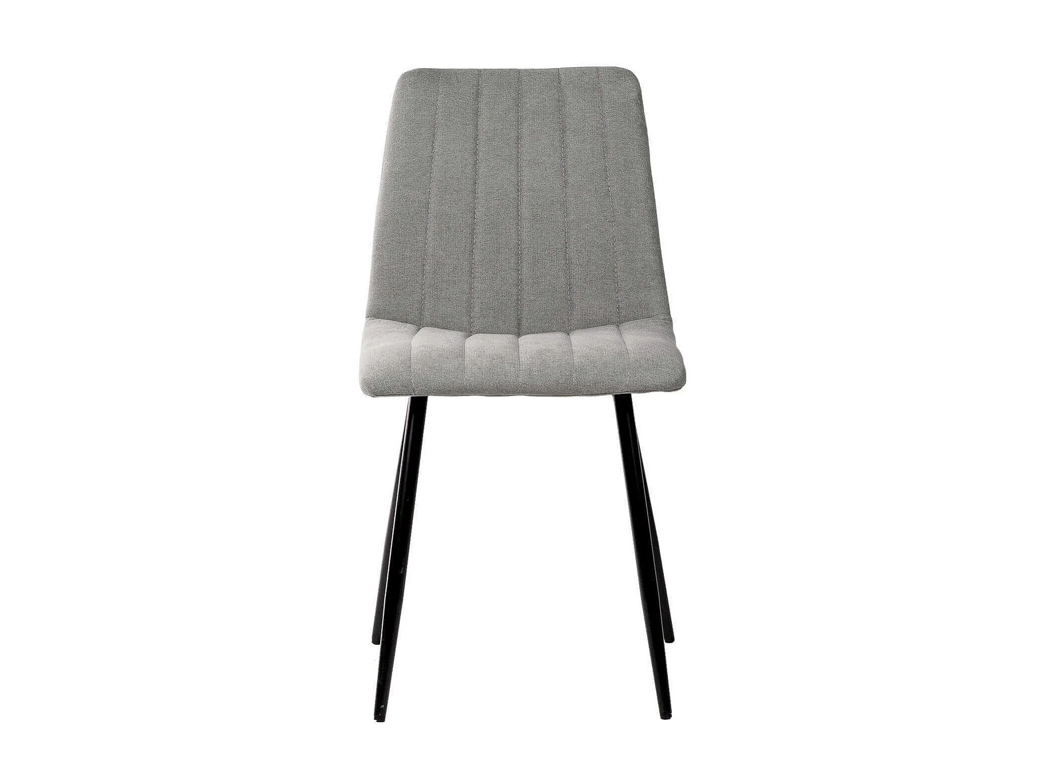 Chaise tissu gris clair matelassé et pieds métal noir Lina