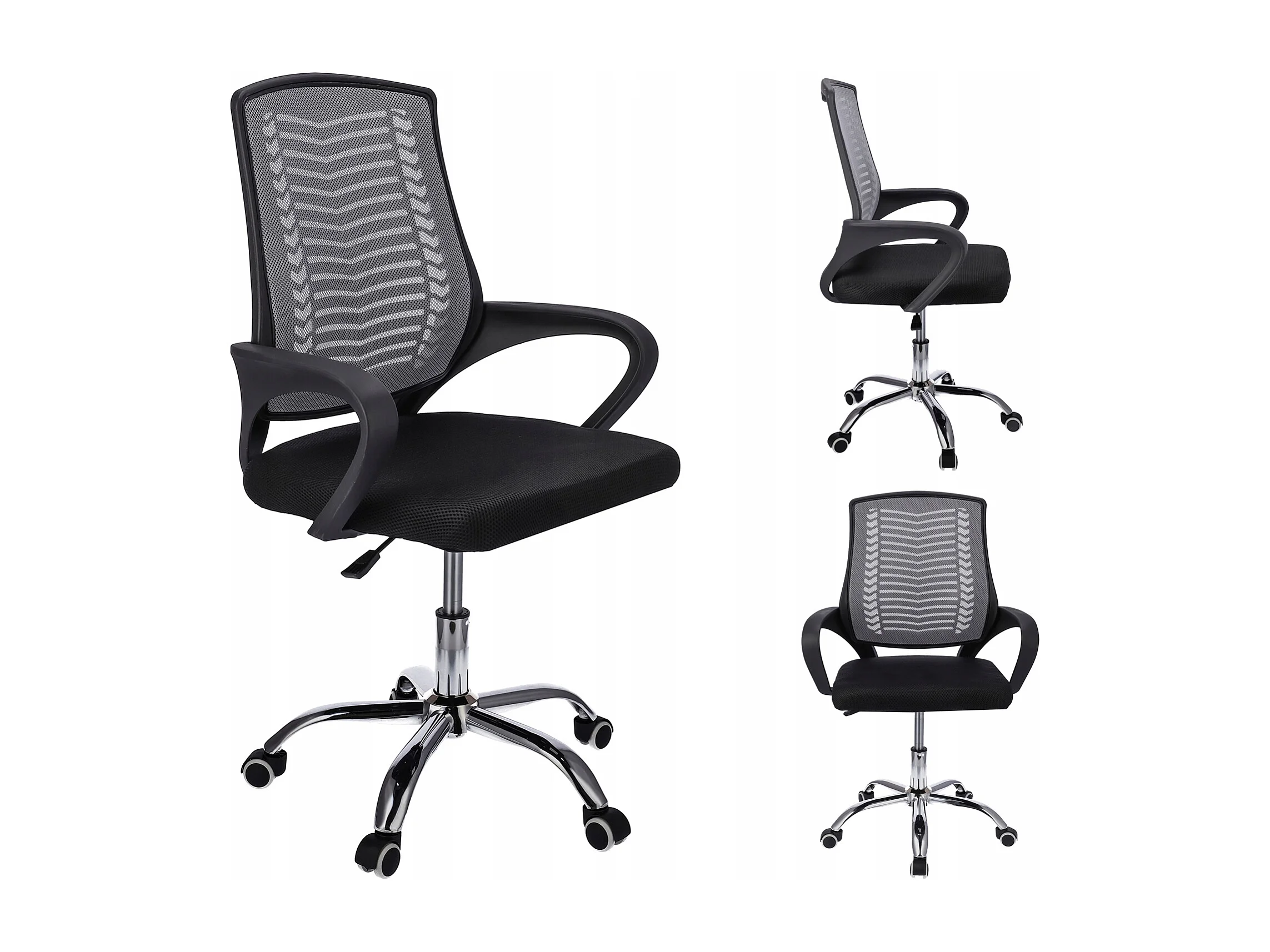 Chaise de bureau ergonomique, réglable en hauteur, avec accoudoirs, PVC, noir (52.5x54x99 cm)
