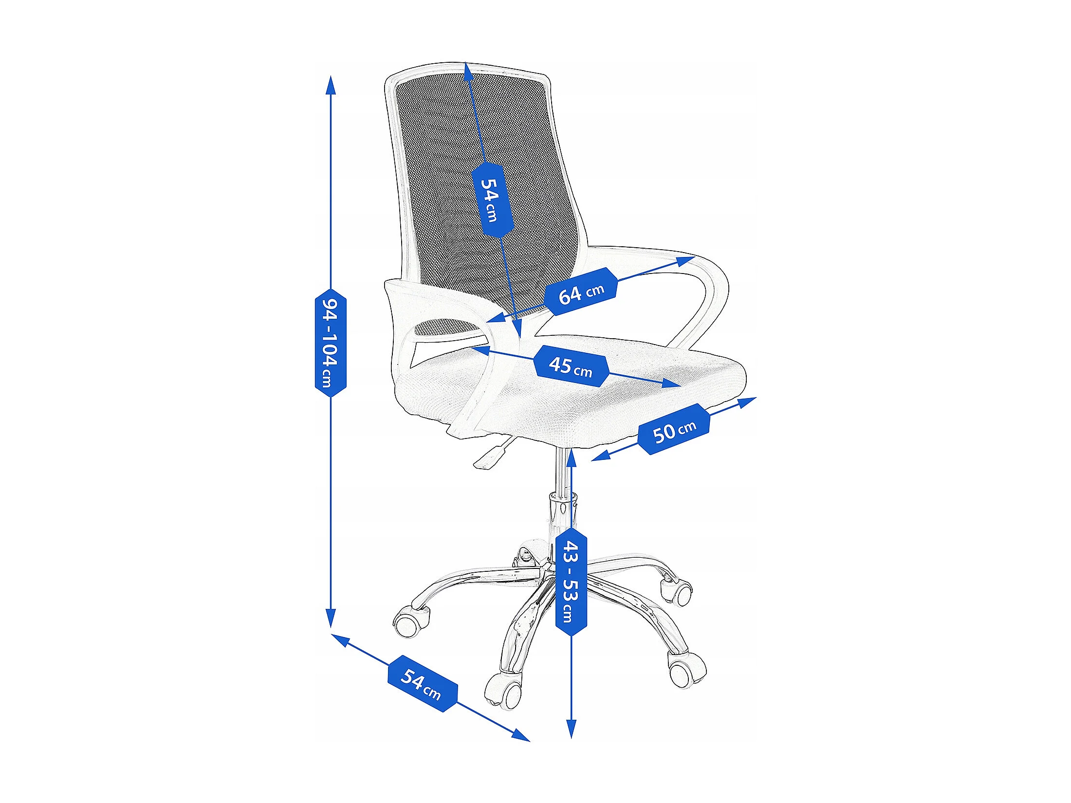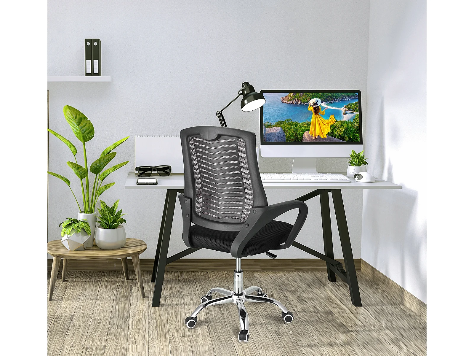 Chaise de bureau ergonomique avec appuie-tête, soutien lombaire, siège réglable et fonction basculante, tissu maillé, noir (64x59x104-124 cm)