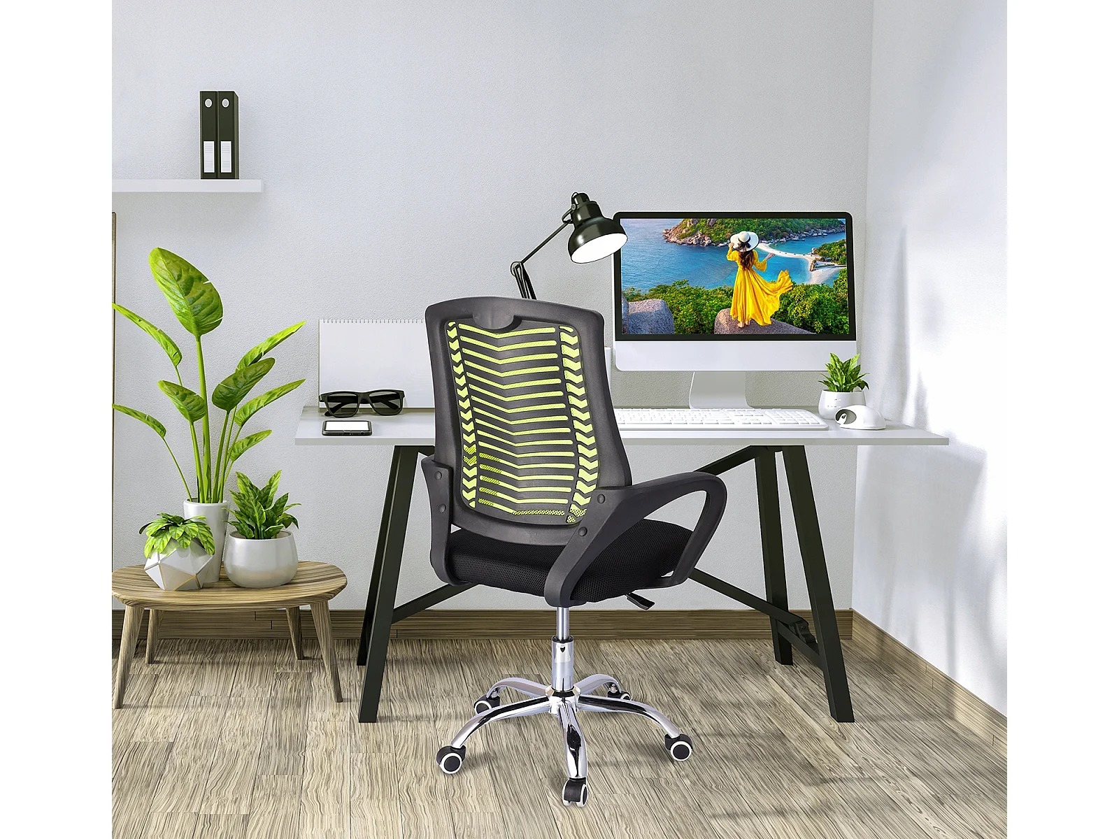 Chaise de bureau ergonomique avec appuie-tête, soutien lombaire, siège réglable et fonction basculante, tissu maillé, noir (64x59x104-124 cm)