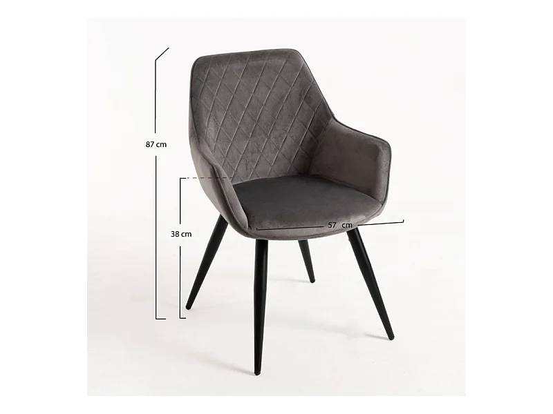 Chaise velours gris foncé et pieds métal noir Zonky - Lot de 2