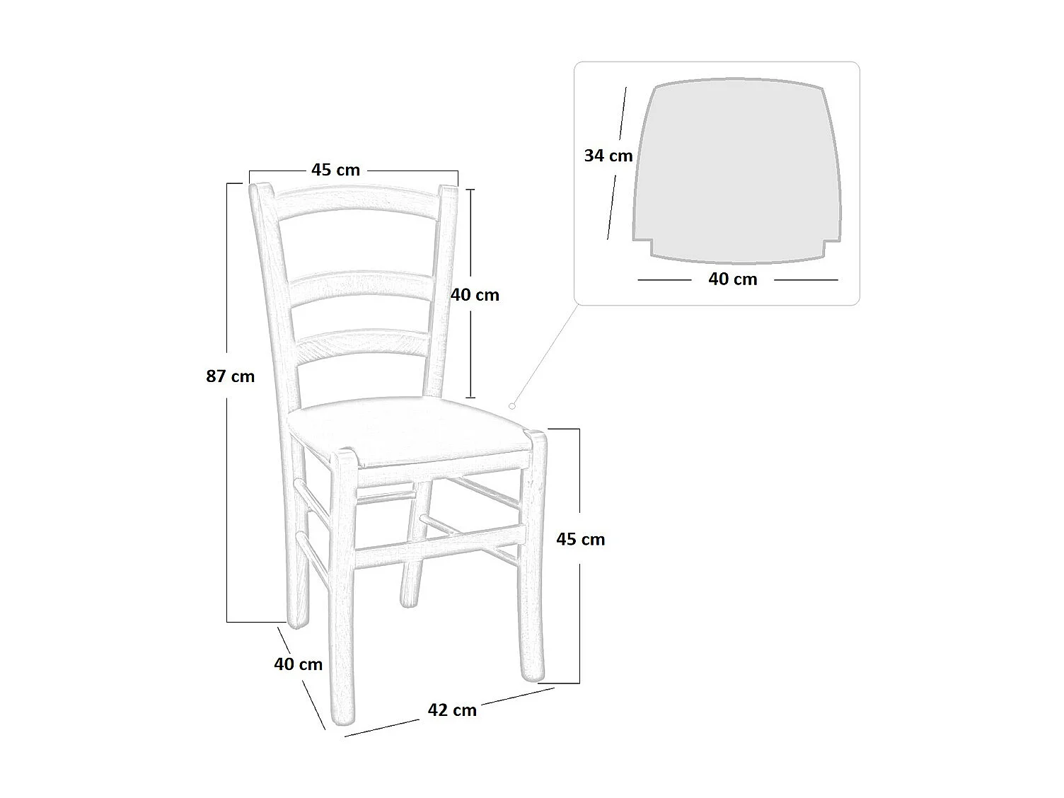 Chaise Amelia en bois brut à peindre avec dossier large et assise en paille