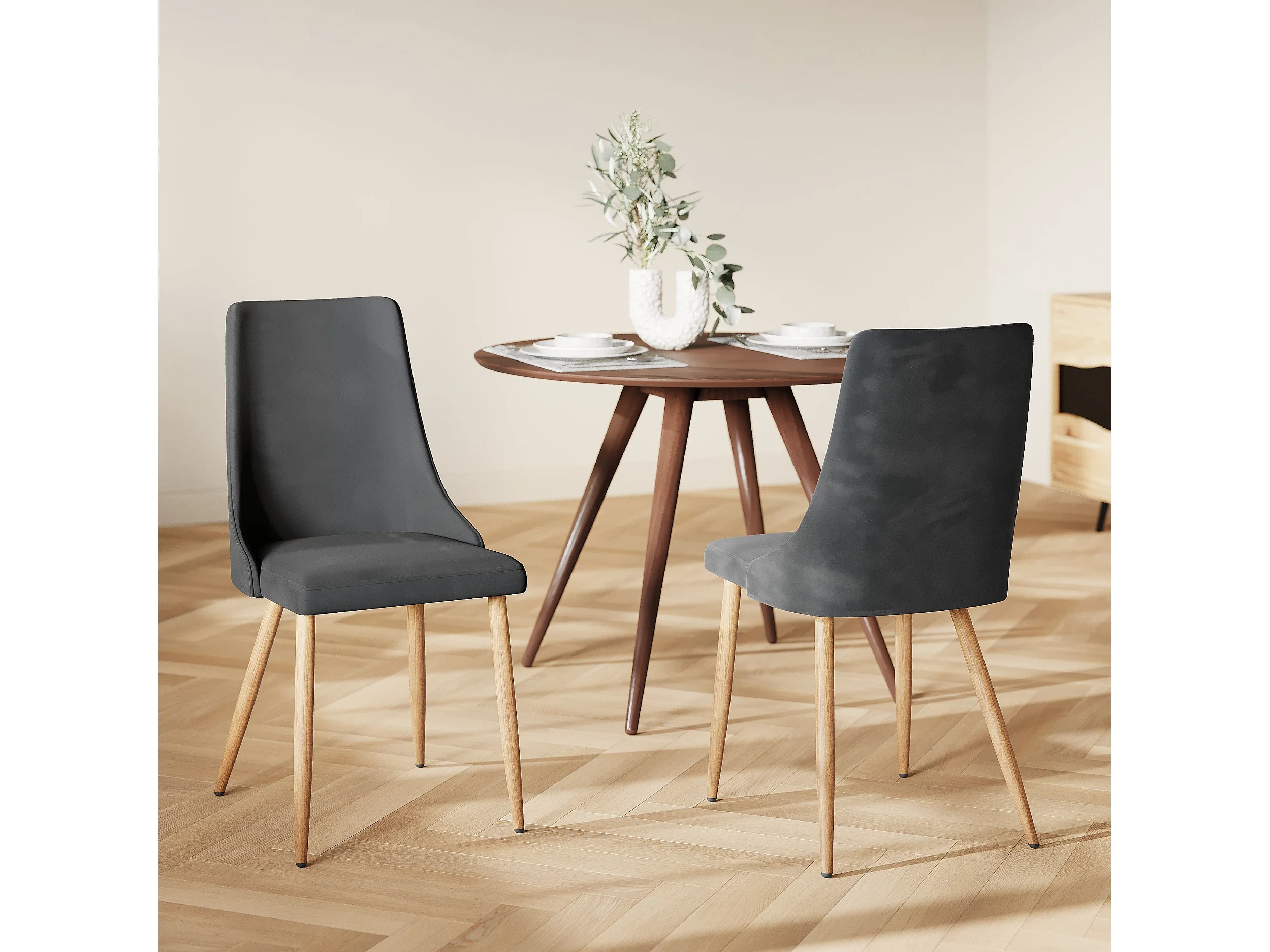 Lot de 2 chaises en velours gris - Vinni