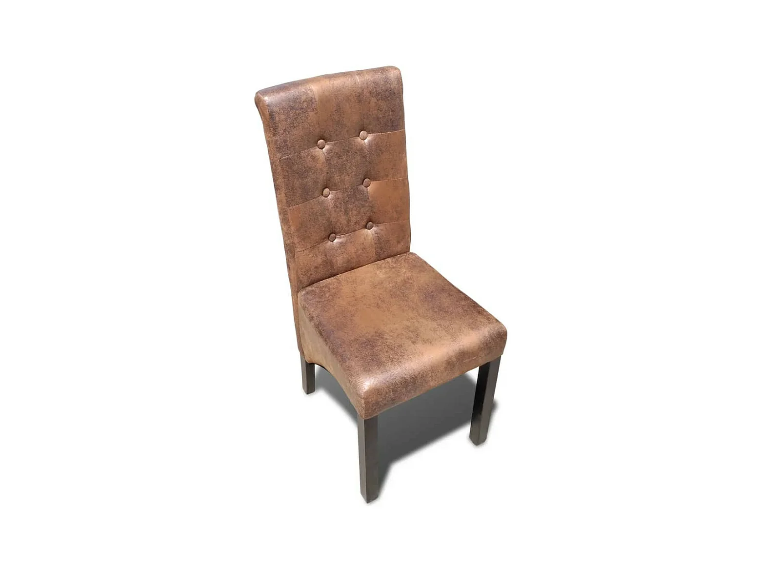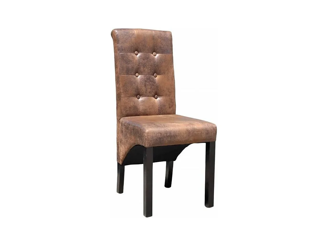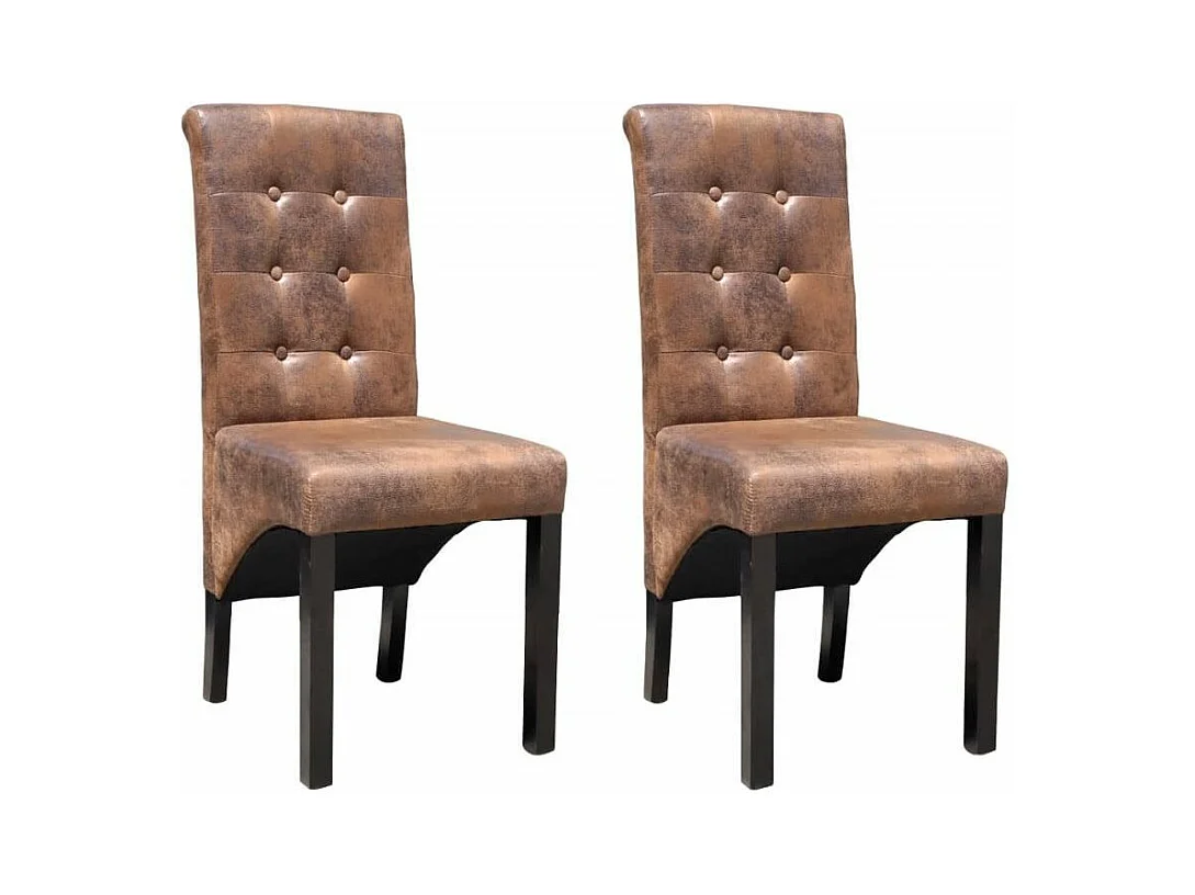 Chaise vintage simili cuir marron vieilli et pieds pin massif Barielle - Lot de 2