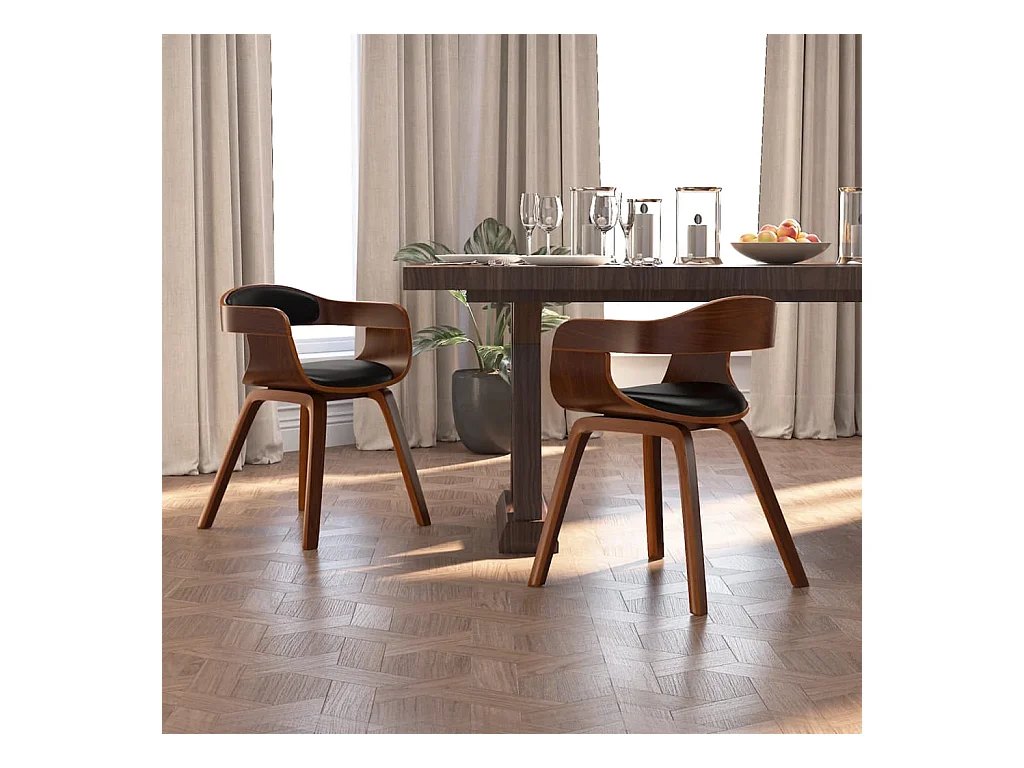 Chaises à manger lot de 2 noir bois courbé et similicuir
