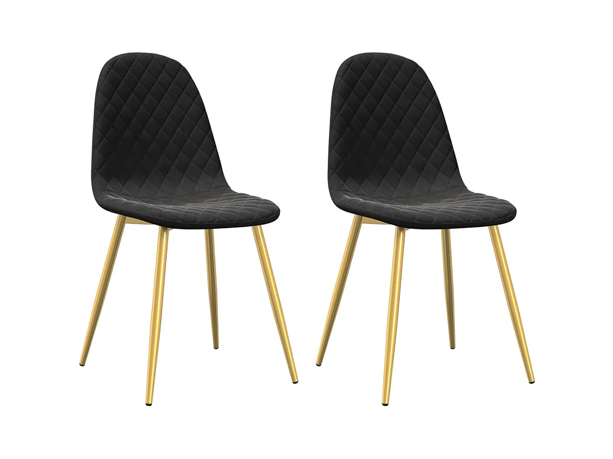 Lot de 2 chaises de salle à manger, chaises de salle à manger en velours plaqué or, design ergonomique, noir