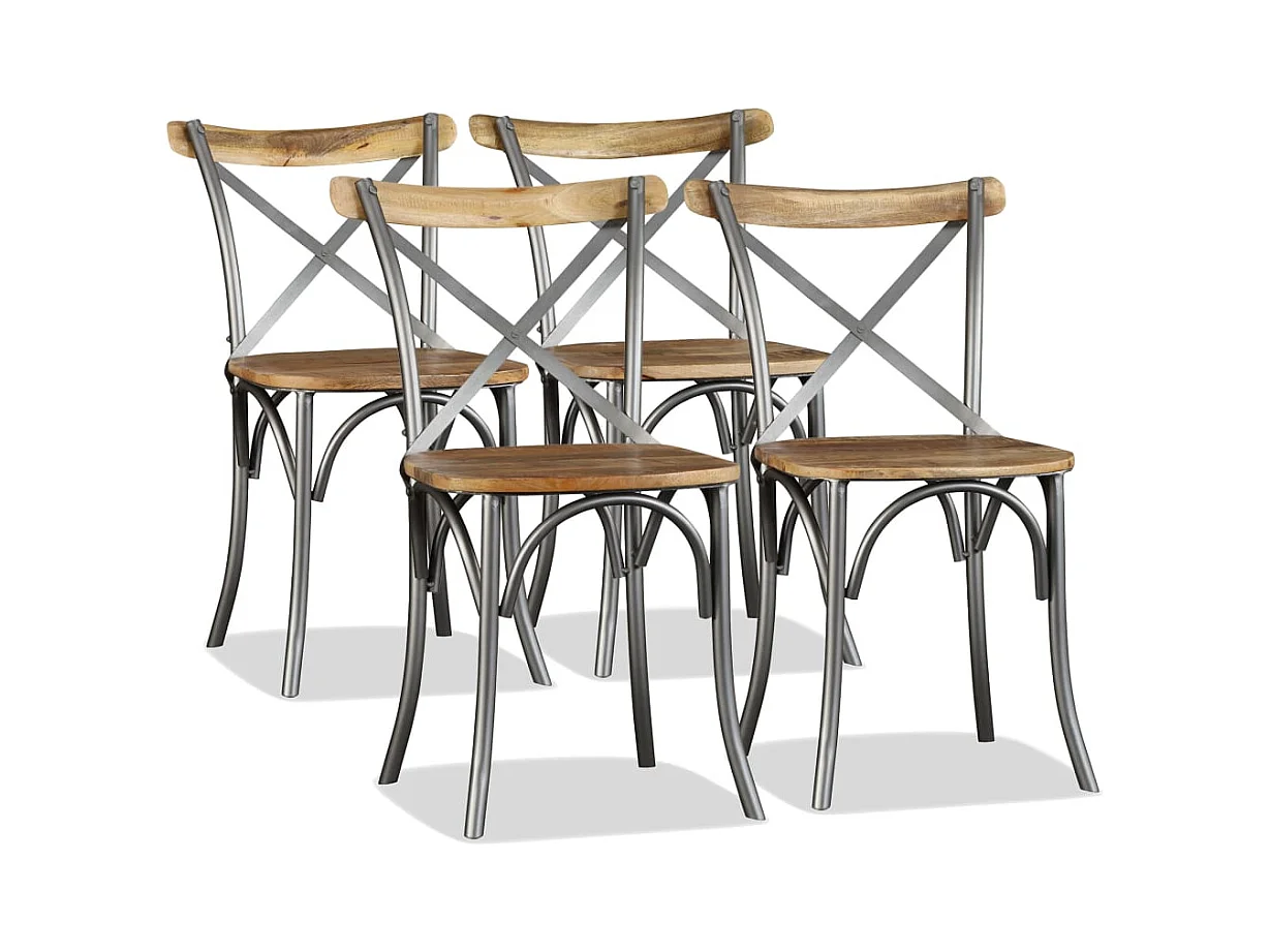 Chaises à manger lot de 4 bois de manguier massif et acier