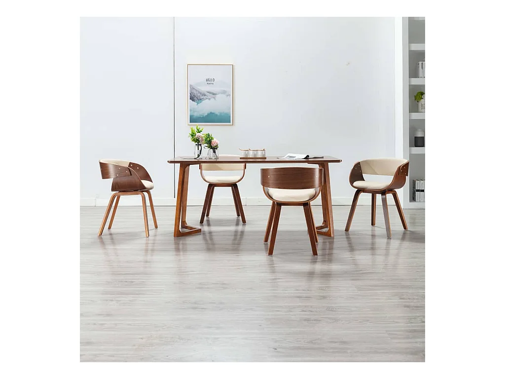 Chaises à manger lot de 4 crème bois courbé et similicuir