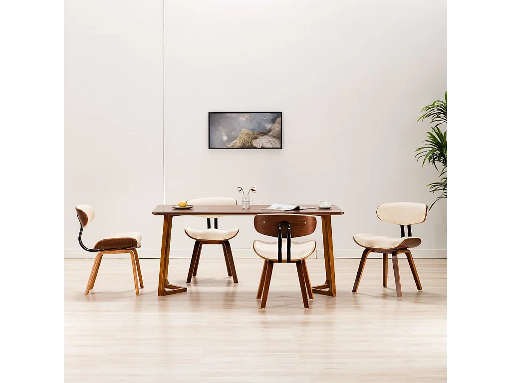 Chaises à manger lot de 4 crème bois courbé et similicuir