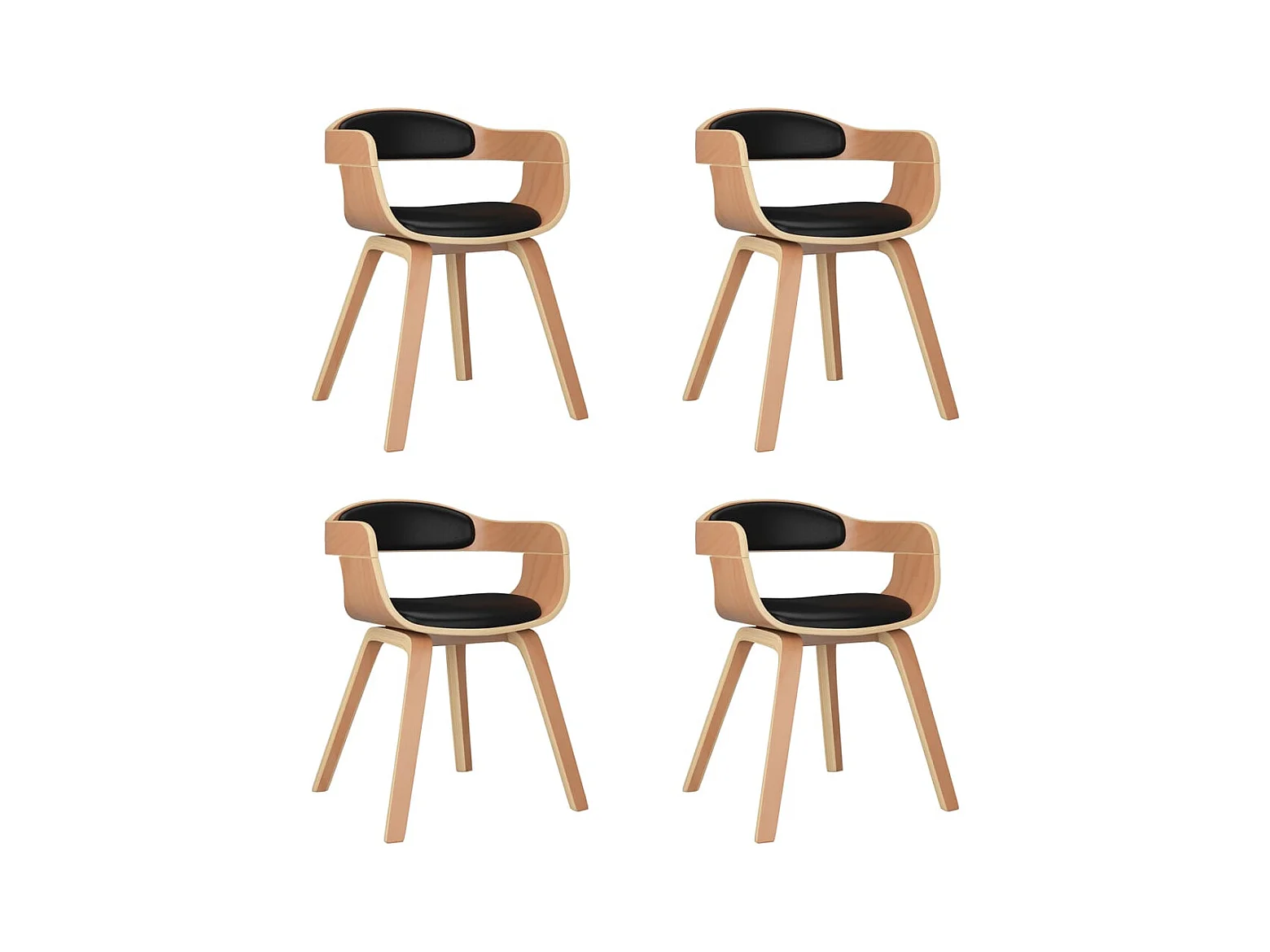 Chaises à manger lot de 4 noir bois courbé et similicuir