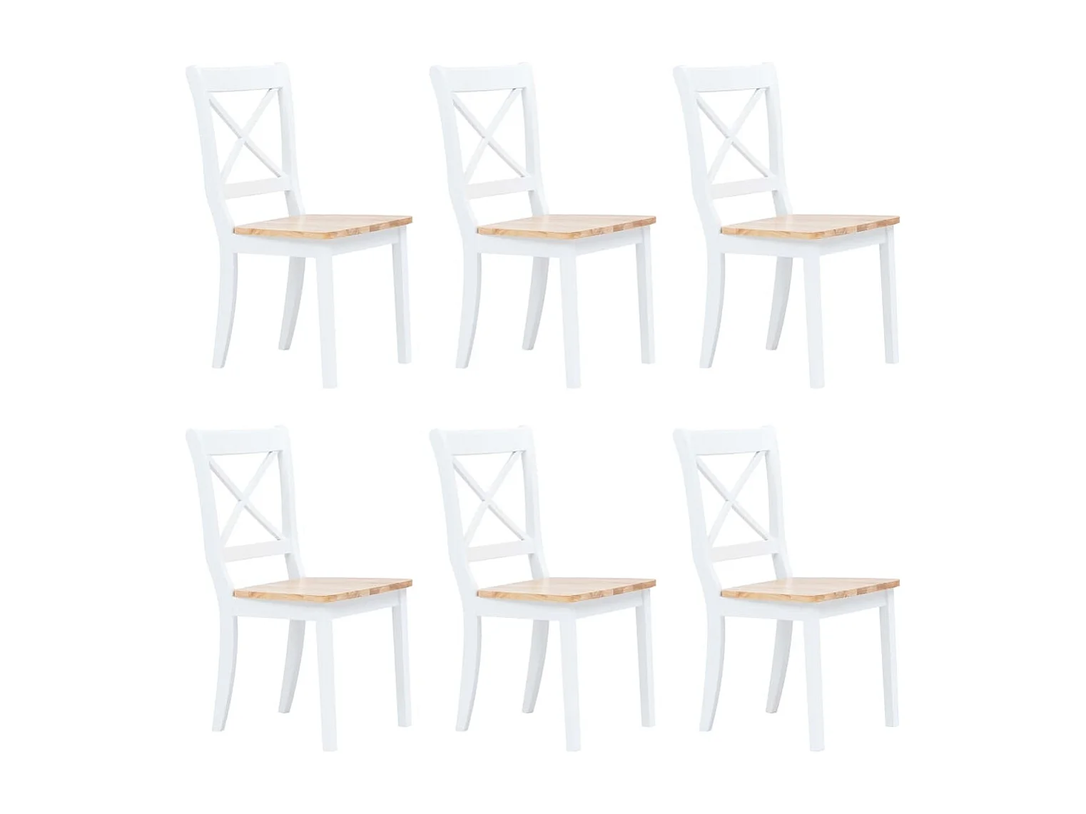 Chaises à manger lot de 6 blanc/bois clair bois d'hévéa massif