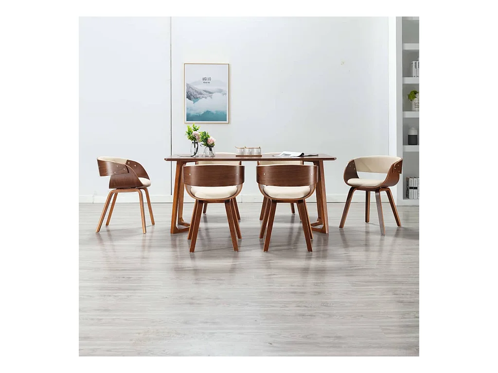 Chaises à manger lot de 6 crème bois courbé et similicuir