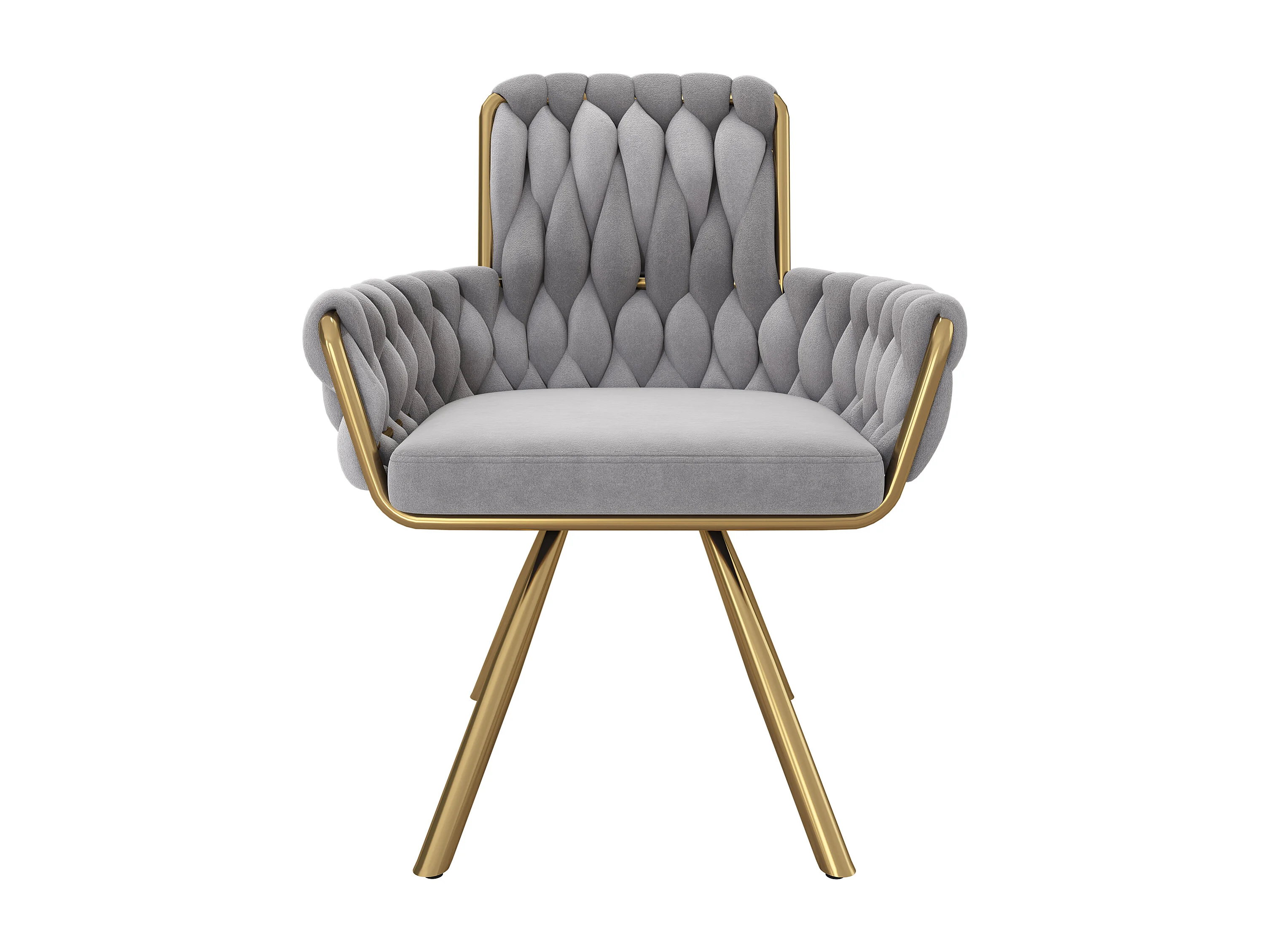 Chaises à manger rotative avec accoudoirs et dossier - pieds en métal doré - gris velours
