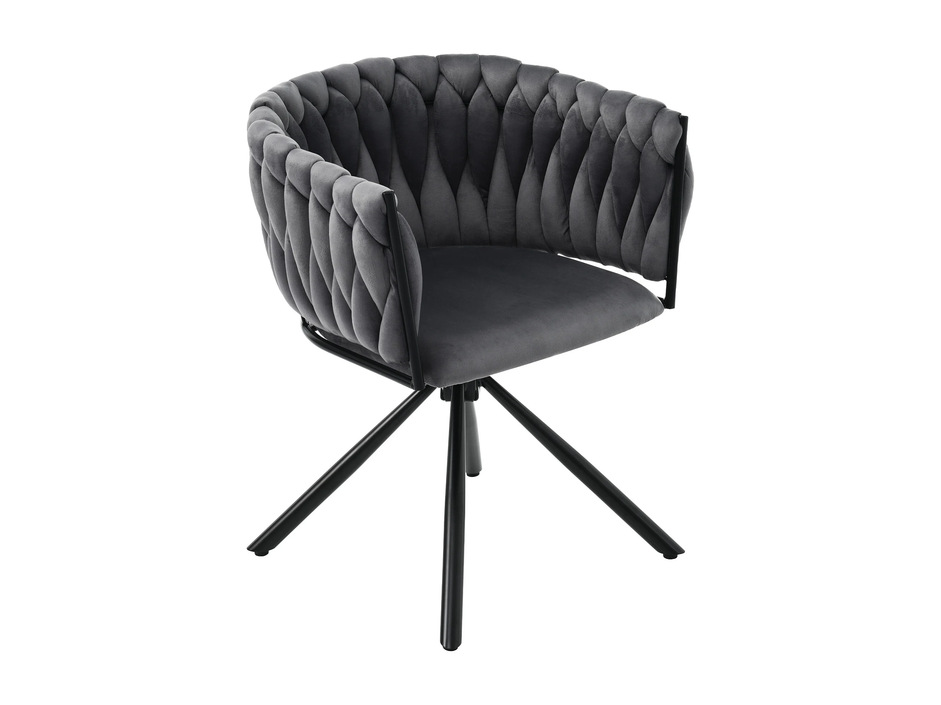 Chaise en velours avec accoudoirs et dossier 360° rotatif - pieds en métal - gris