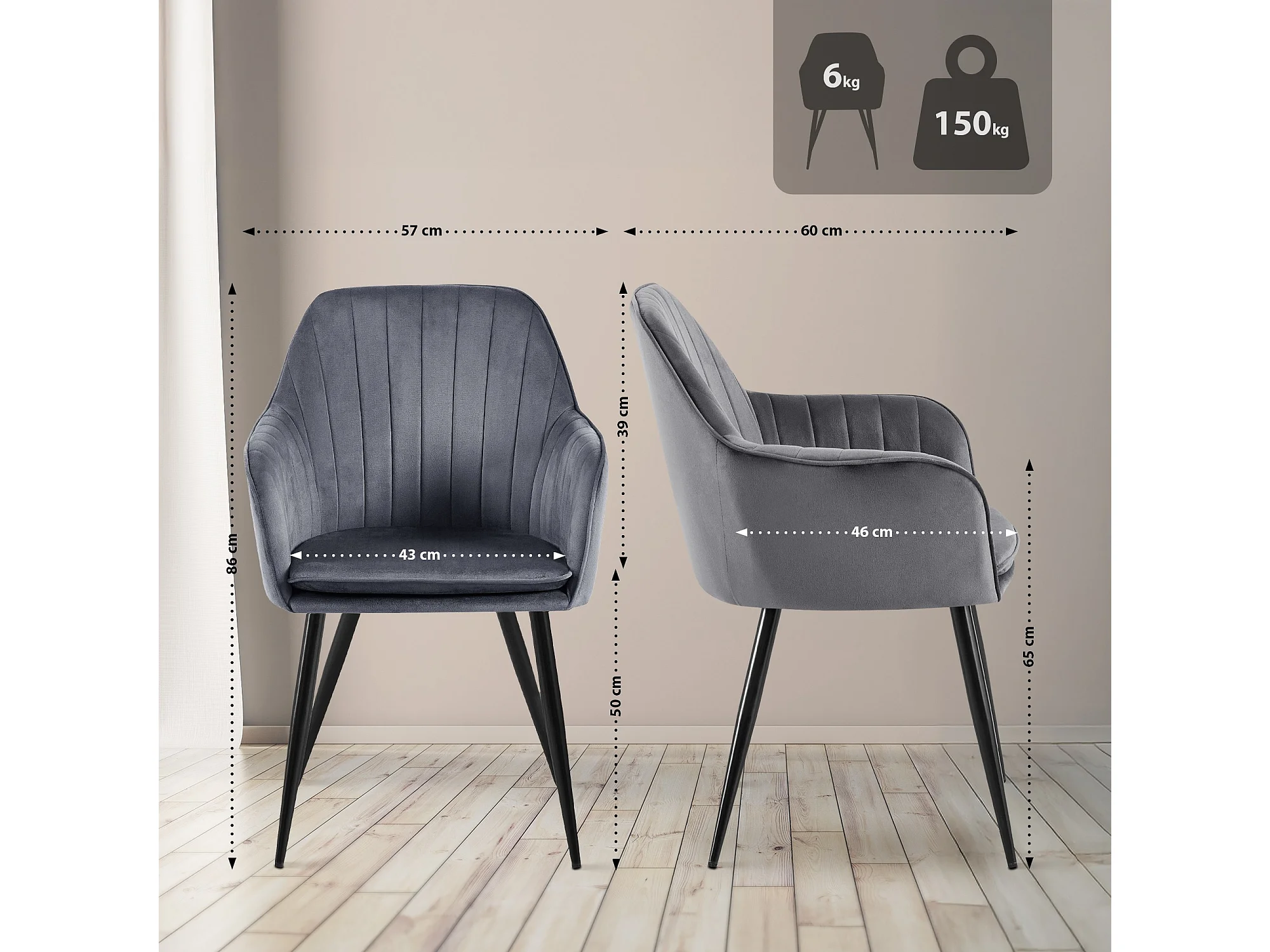 Pismo Chair, Fauteuil recouvert de velours, Chaise de salle à manger rembourrée, Siège de réunion, 45x56h87 cm, Gris