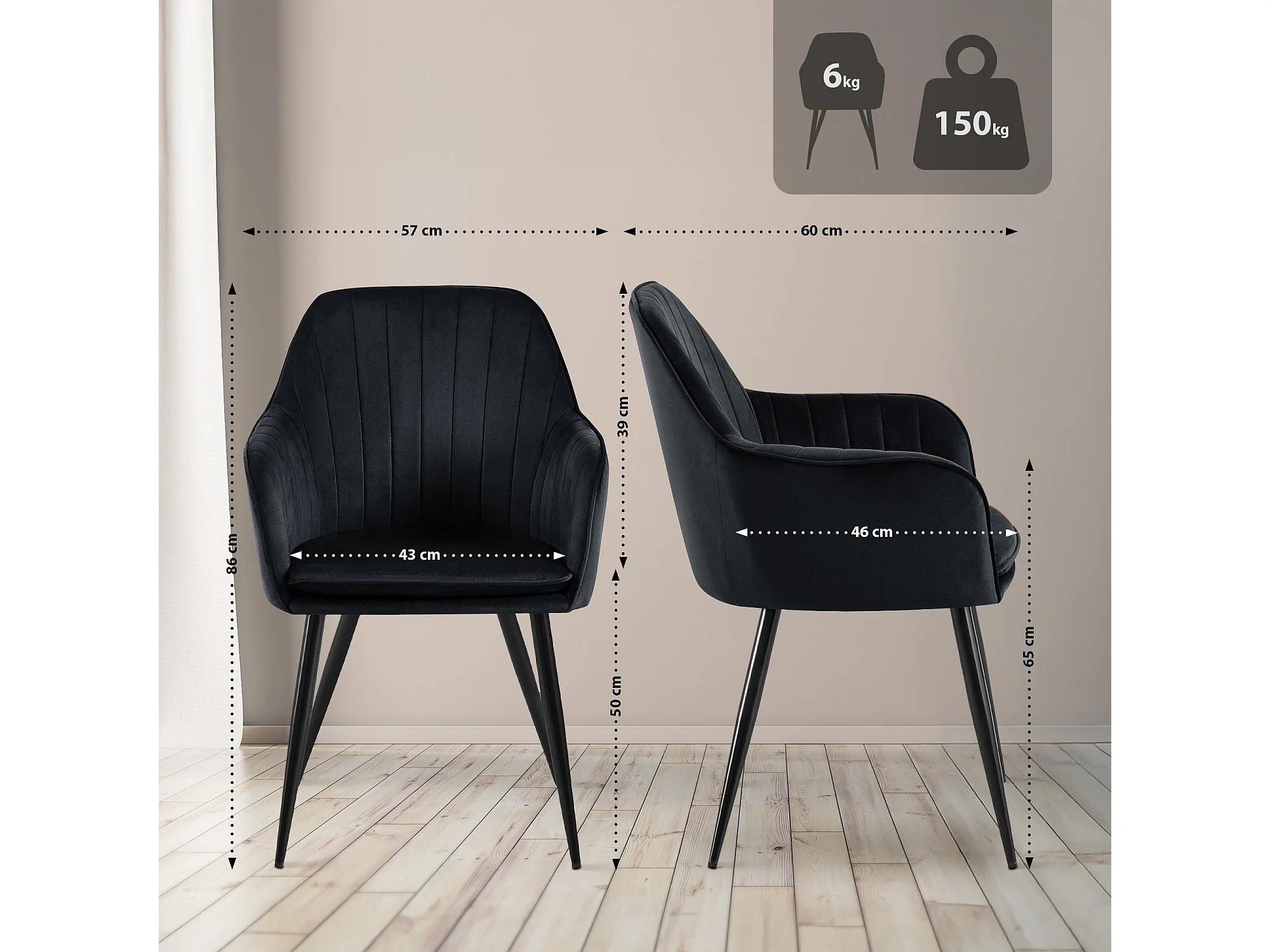 Chaise de salle à manger Valora LUKK – Velours noir avec pieds noirs x1