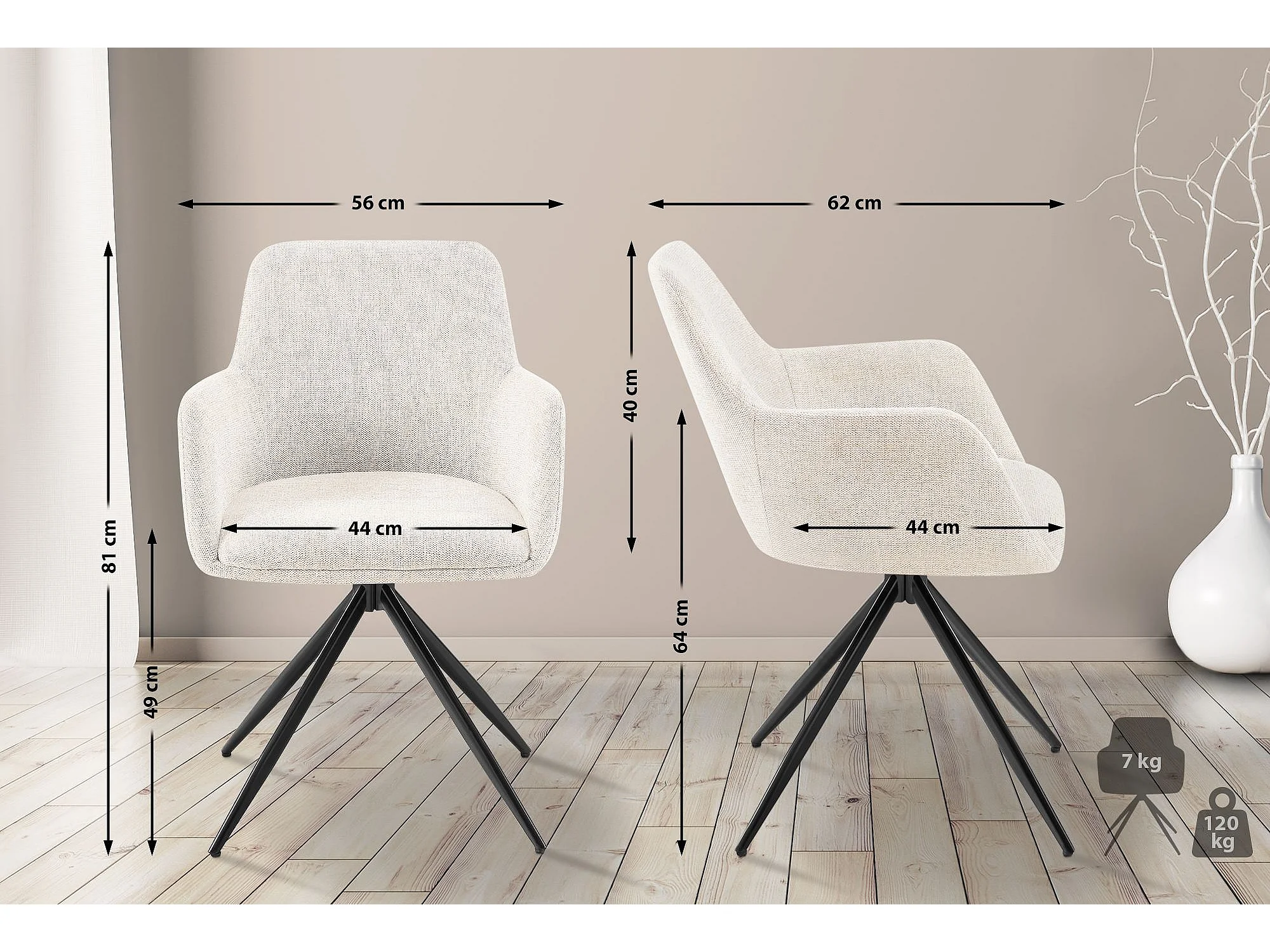 chaises avec accoudoirs - Tissu - Crème - Boise