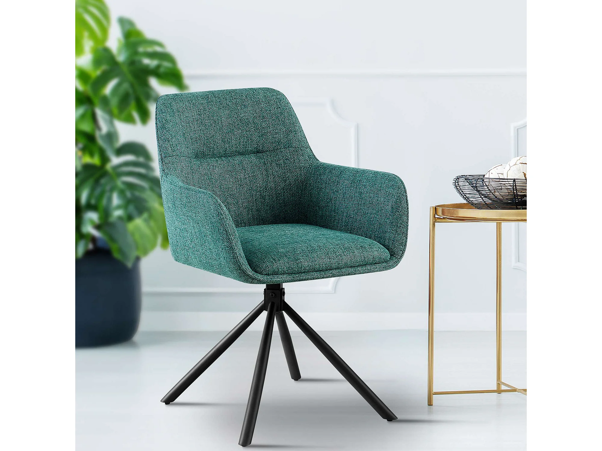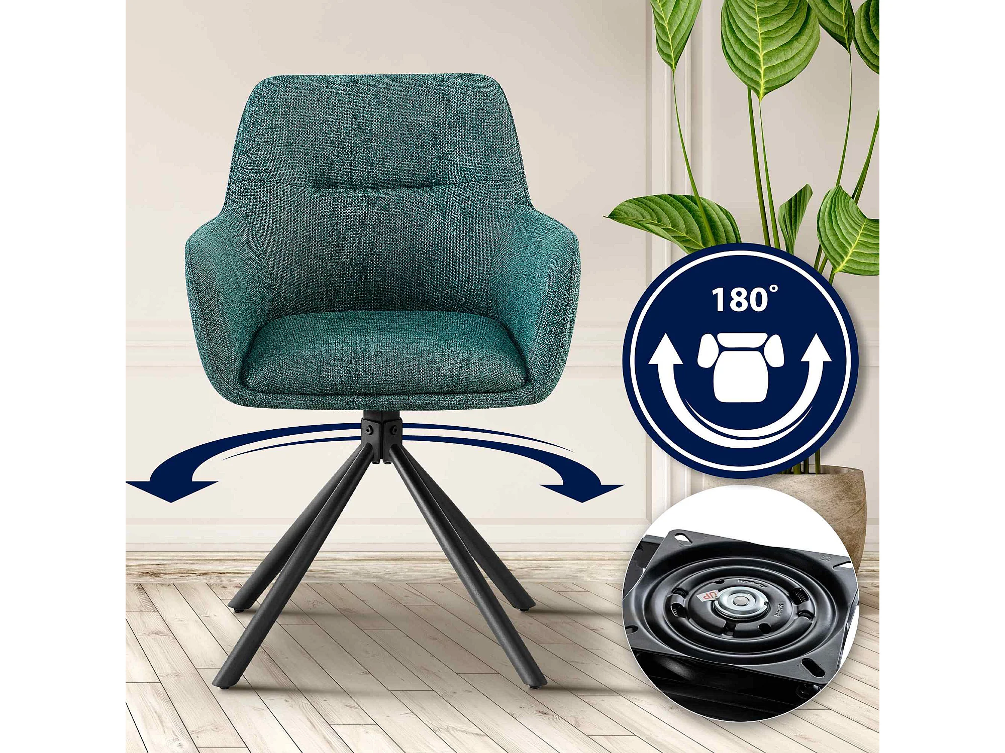 Chaise pivotante à 360º avec accoudoirs tissu bleu et pieds métal noir Larko