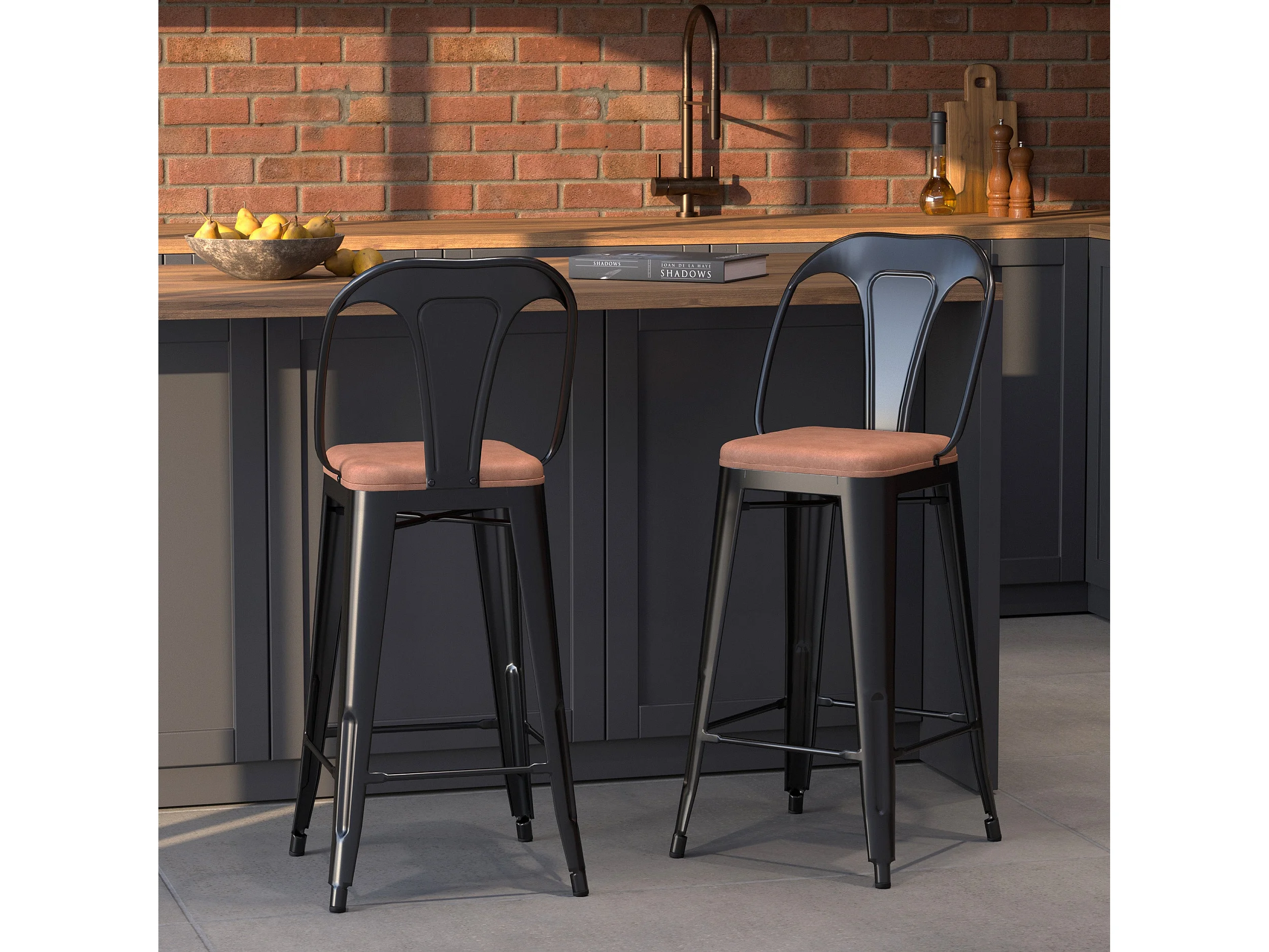 Lot de 2 chaises pour îlot central 68 cm noires et marron - Charly