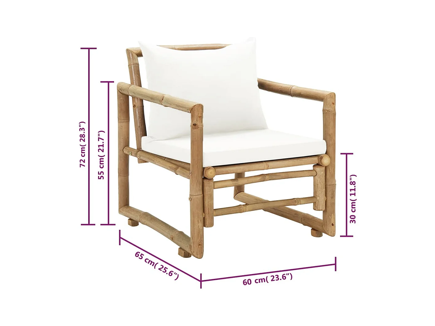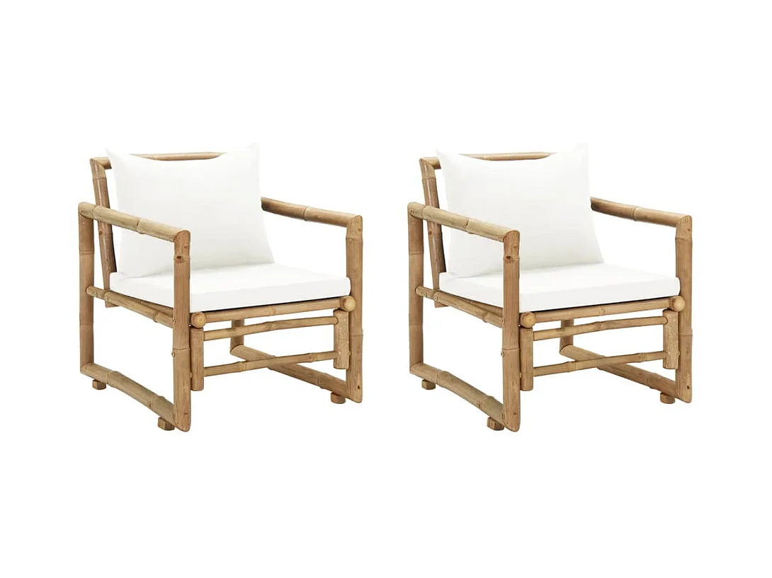 Chaises de jardin lot de 2 avec coussins et oreillers Bambou