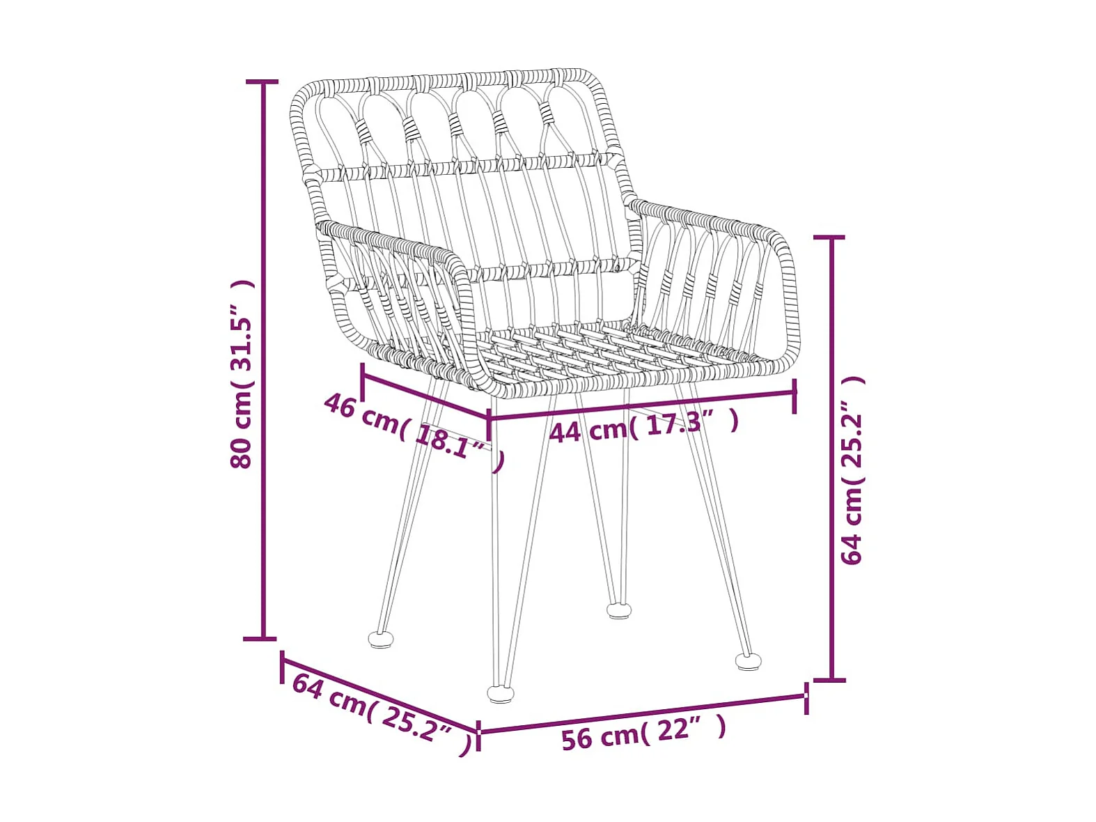 Chaises de jardin 2 pcs et accoudoir 56x64x80 Résine tressée