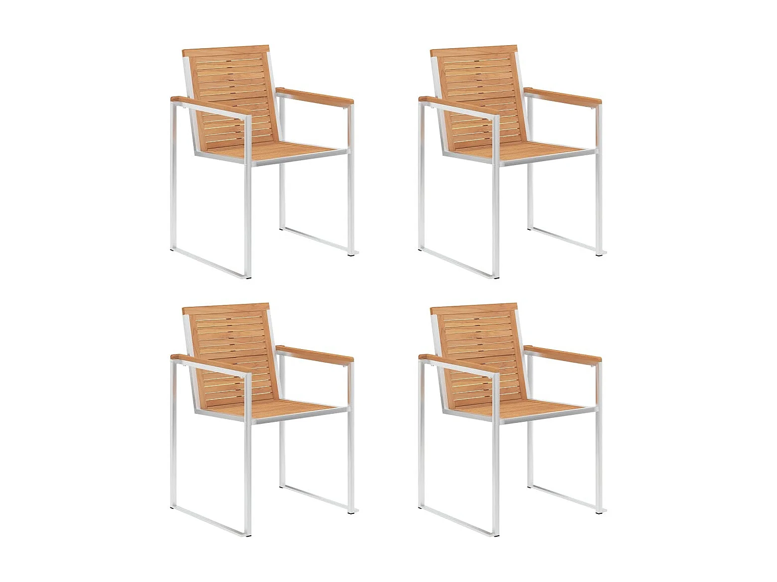 Chaises de jardin 4 pièces avec coussins Bois de teck massif