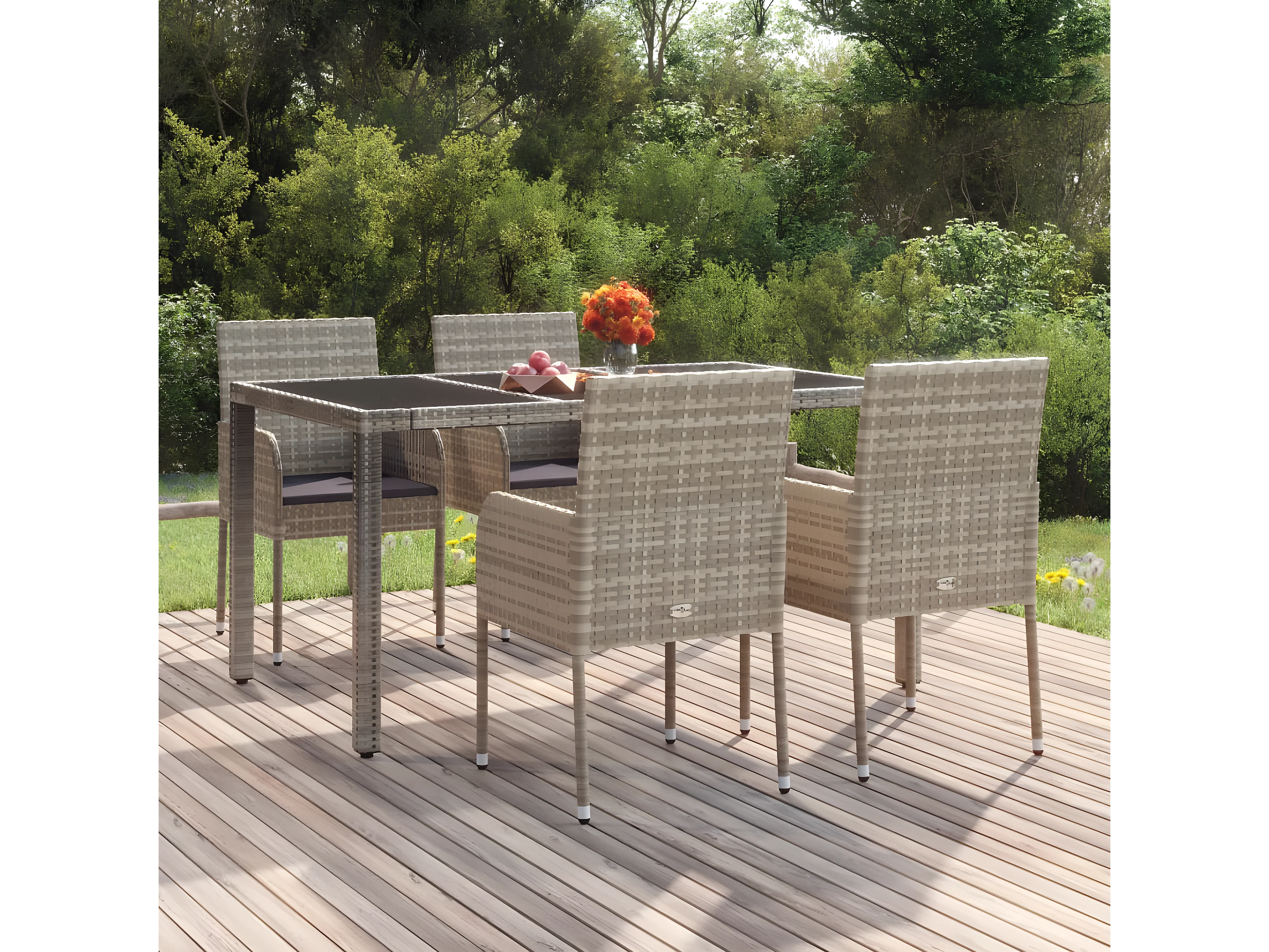 Chaises de jardin avec coussins lot de 4 Résine tressée Gris