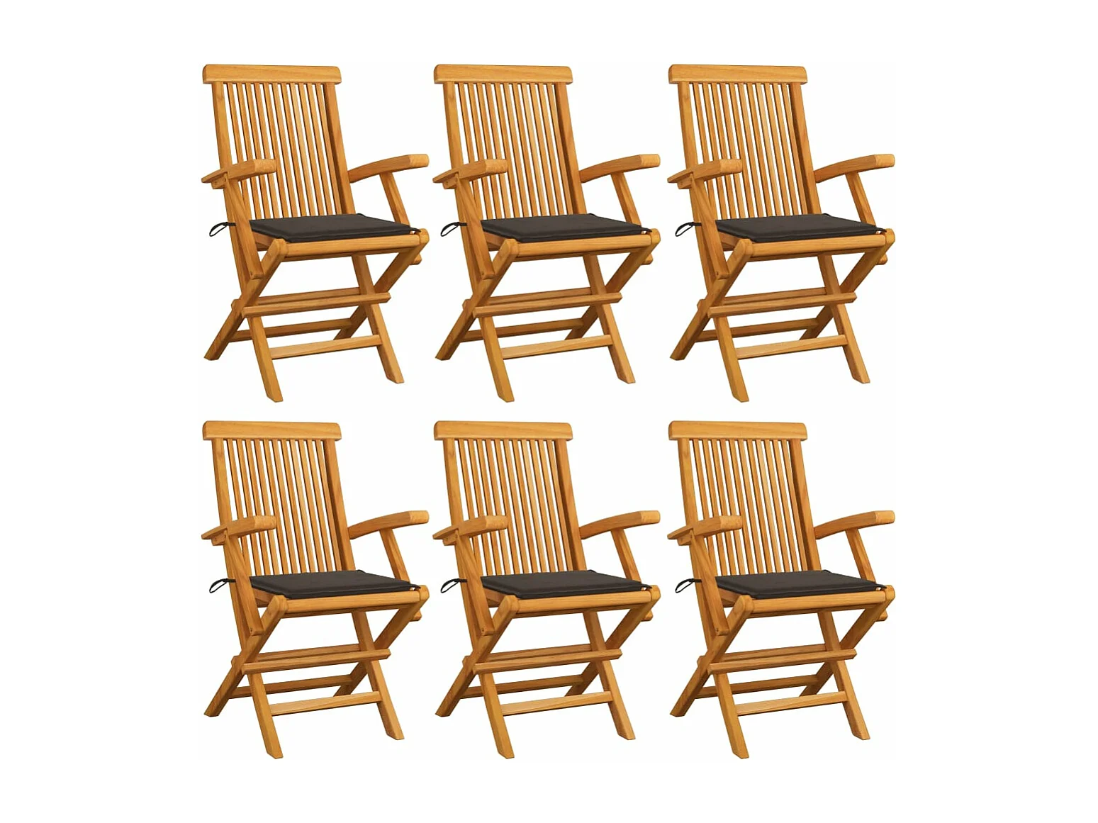 Chaises de jardin avec coussins taupe 6 pcs Bois de teck massif