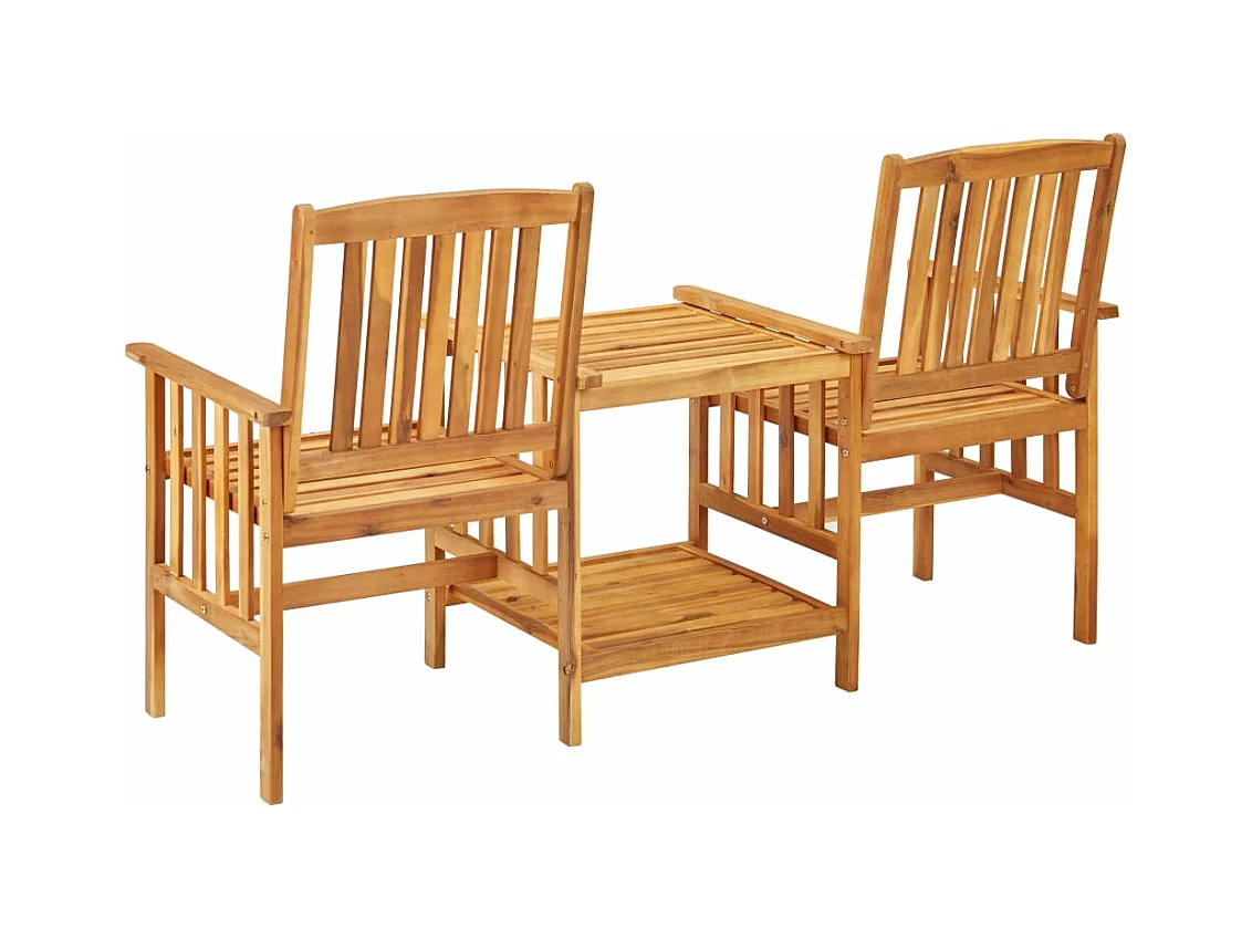 Chaises de jardin avec table à thé et coussins Acacia solide FR39786