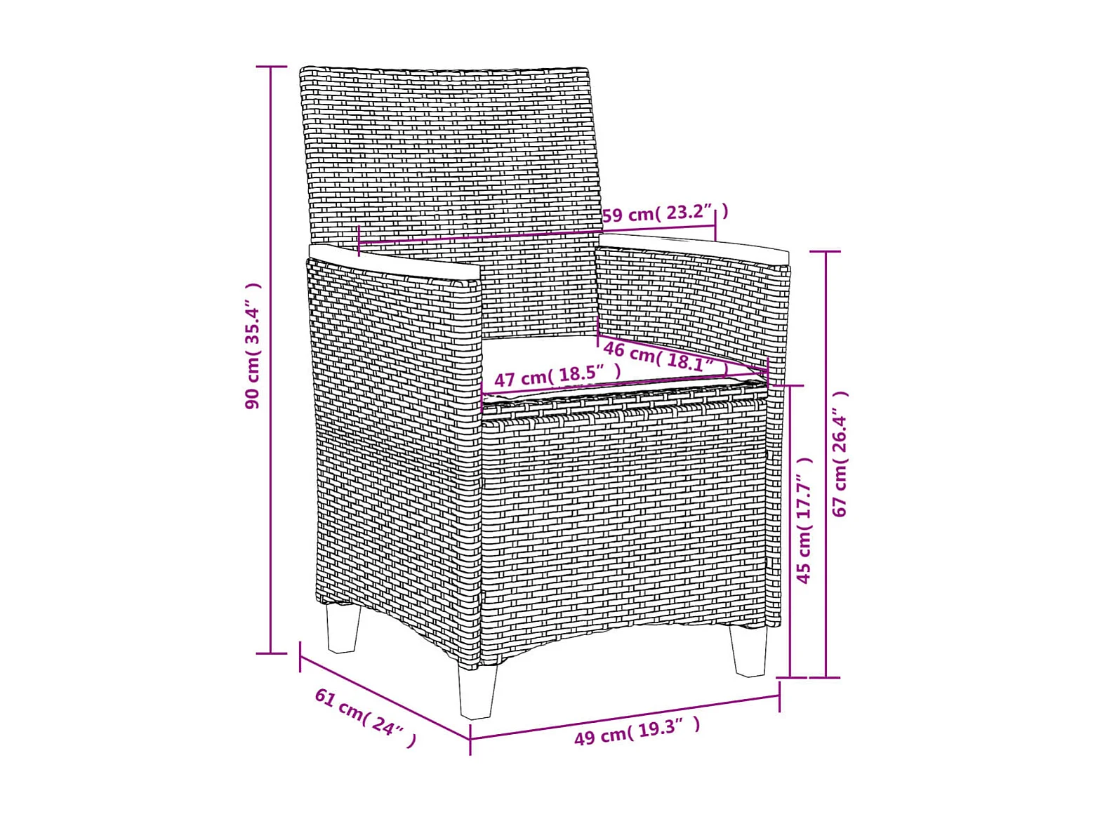Chaises de jardin coussins lot de 2 gris résine tressée et bois