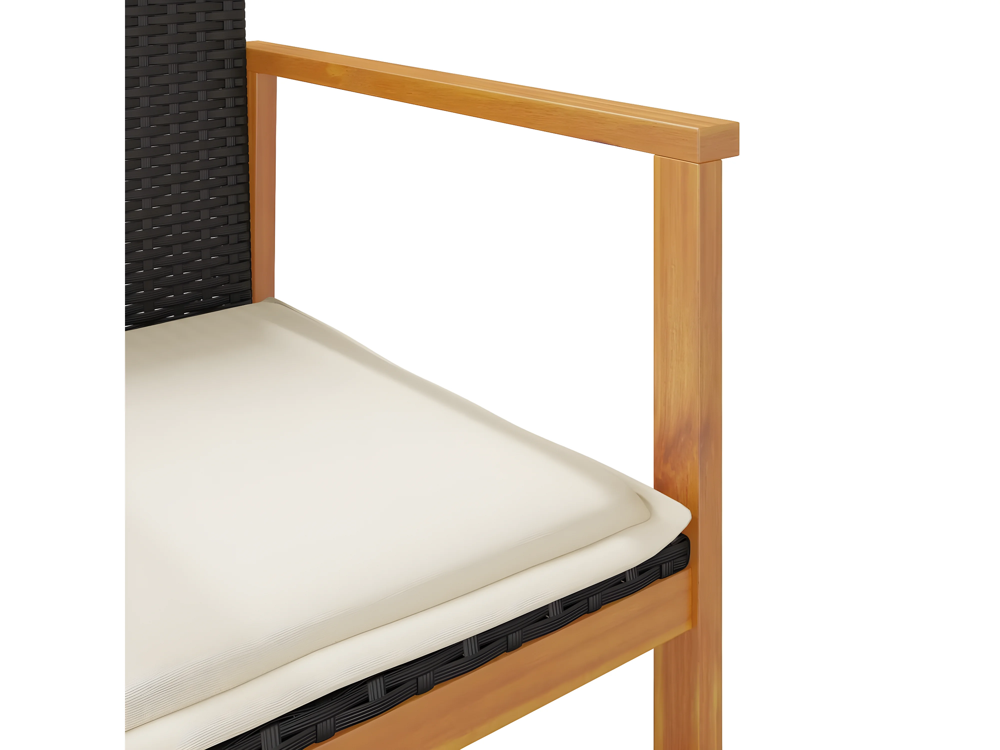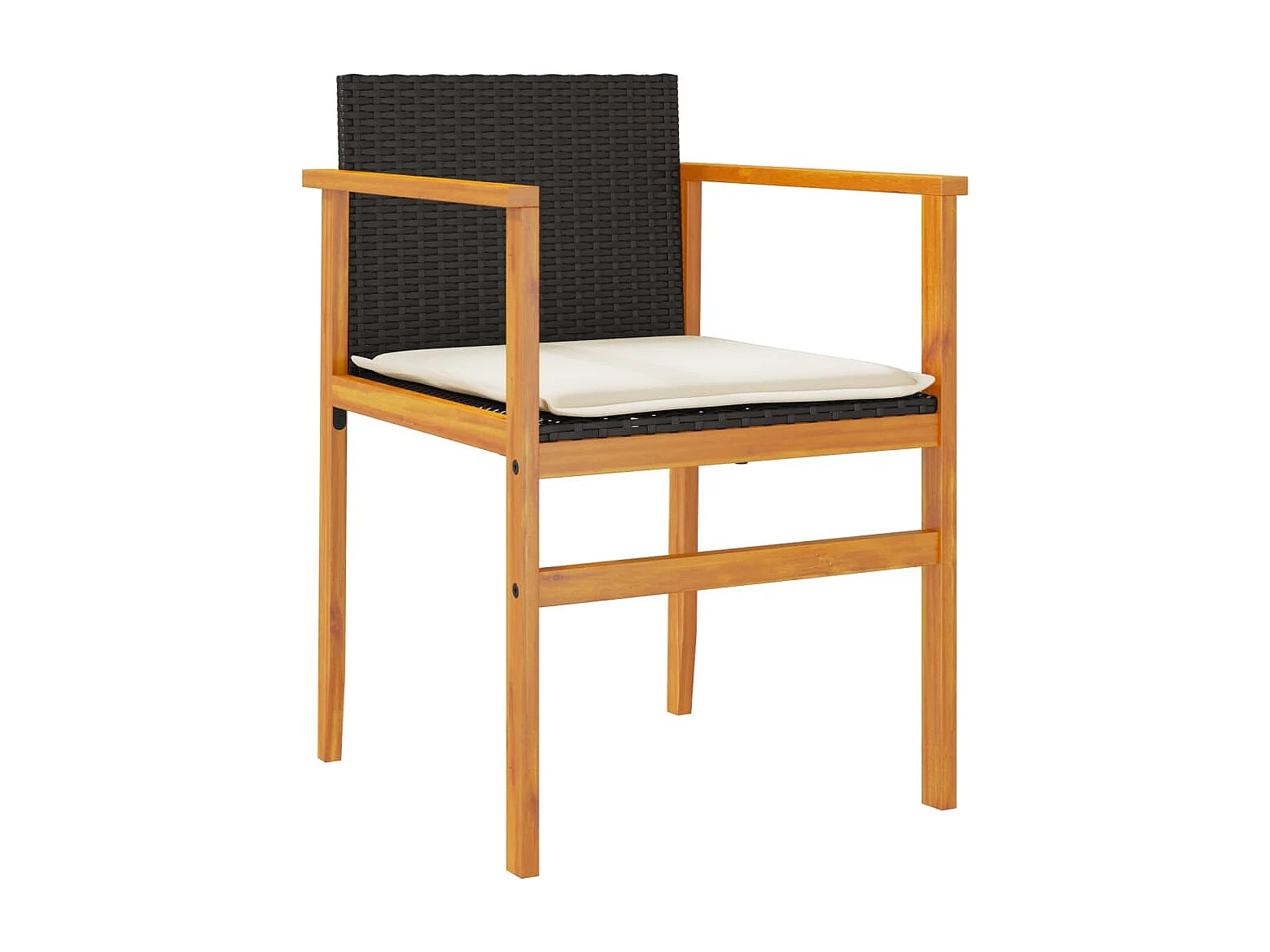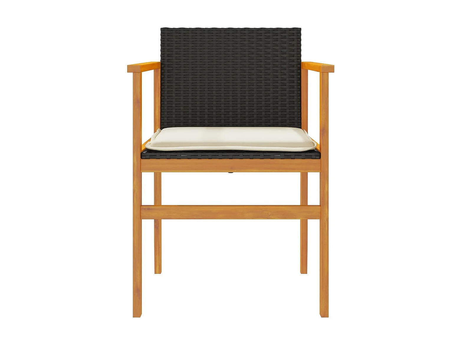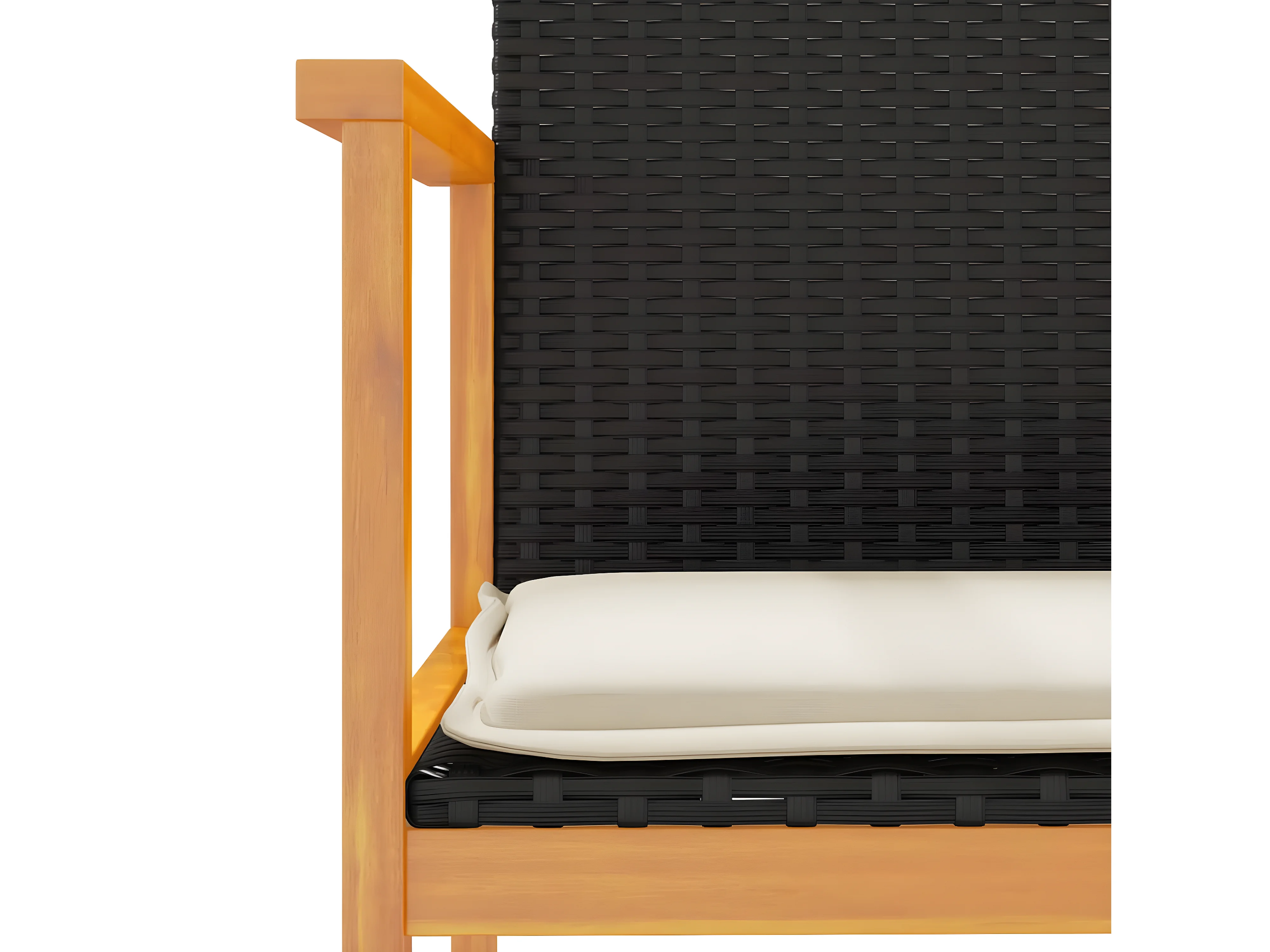 Chaises de jardin coussins lot de 2 noir résine tressée et bois