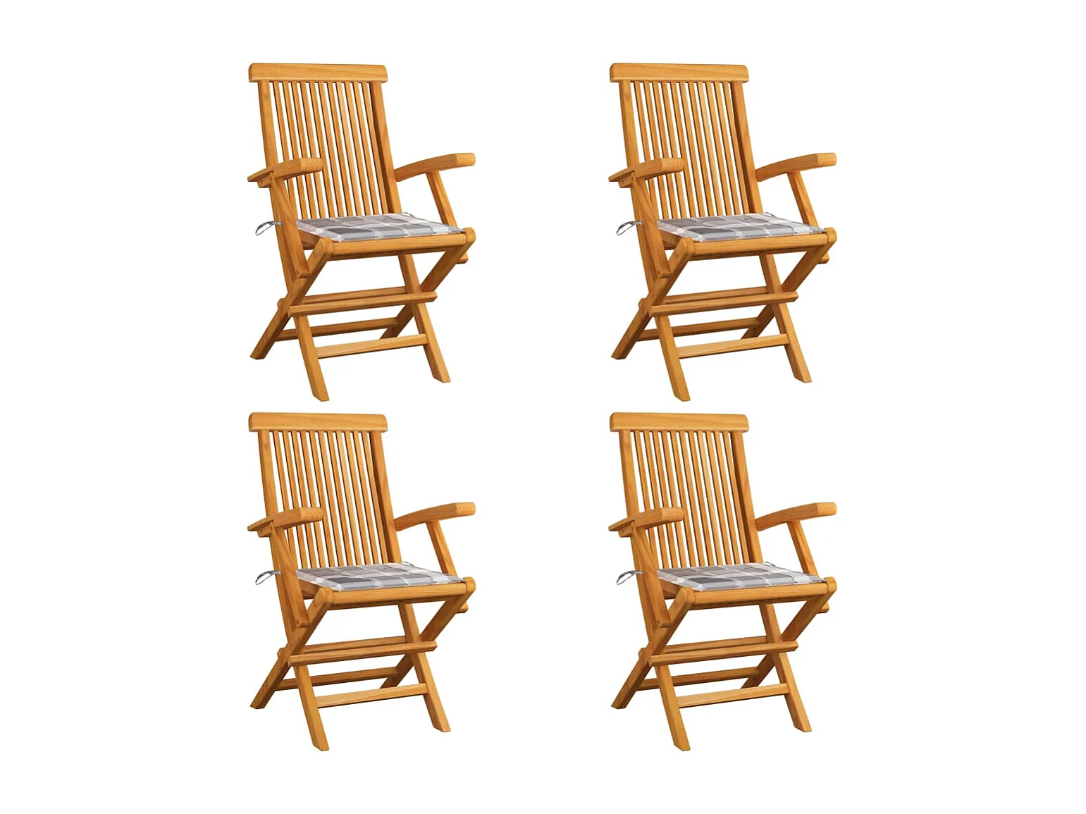 Chaises de jardin et coussins à carreaux gris 4 pcs Teck massif