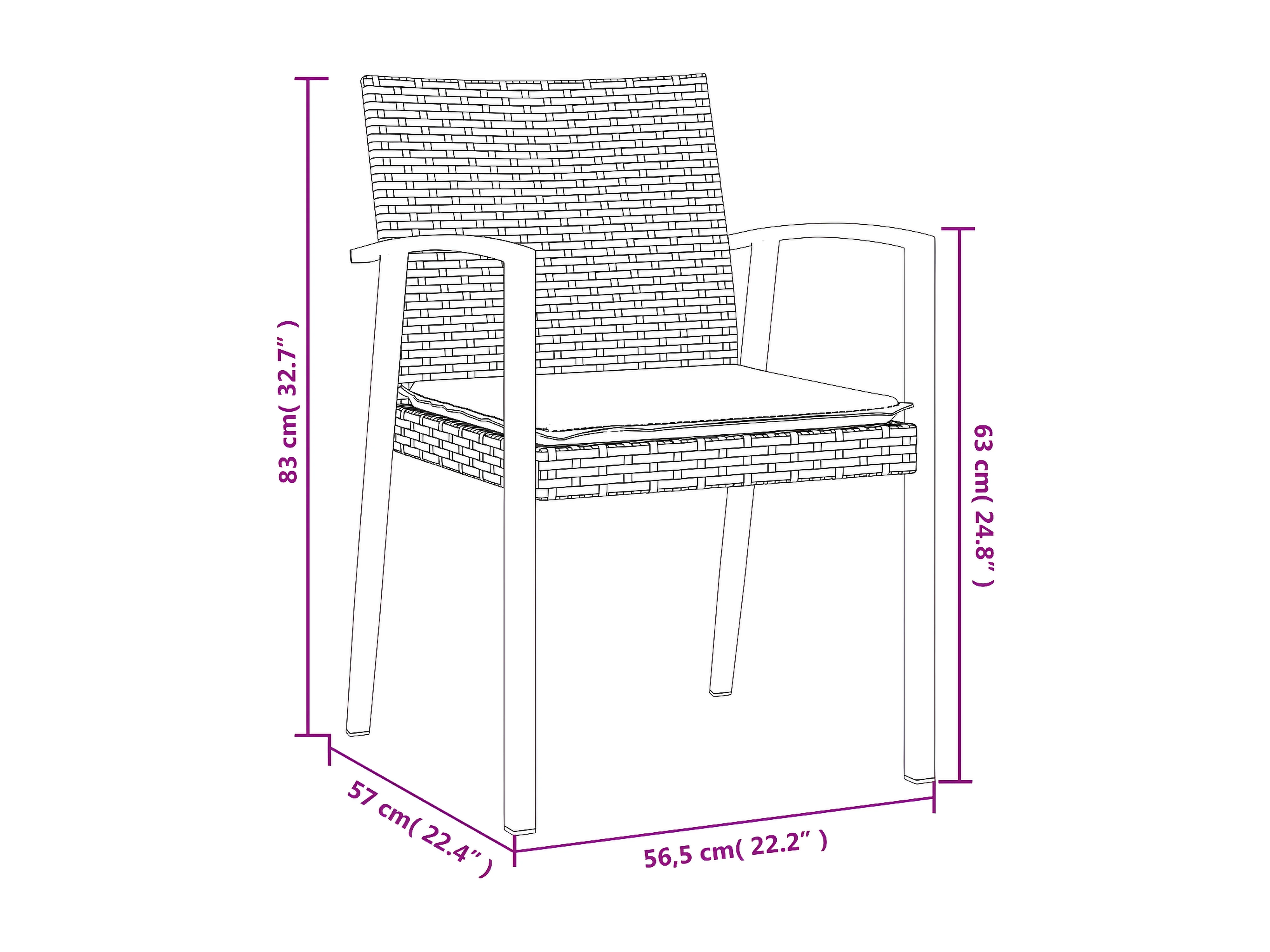 Chaises de jardin et coussins lot de 2 noir 56,5x57x83 rotin