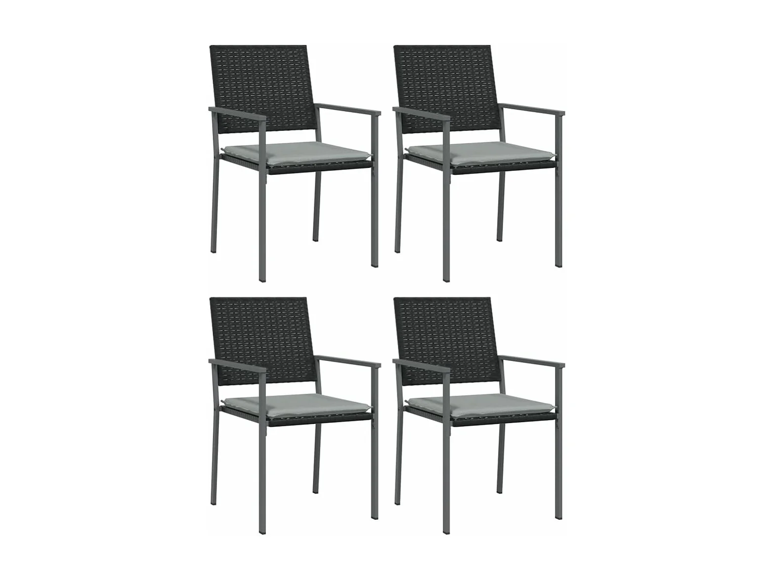 Chaises de jardin et coussins lot de 4 noir 54x62,5x89 rotin