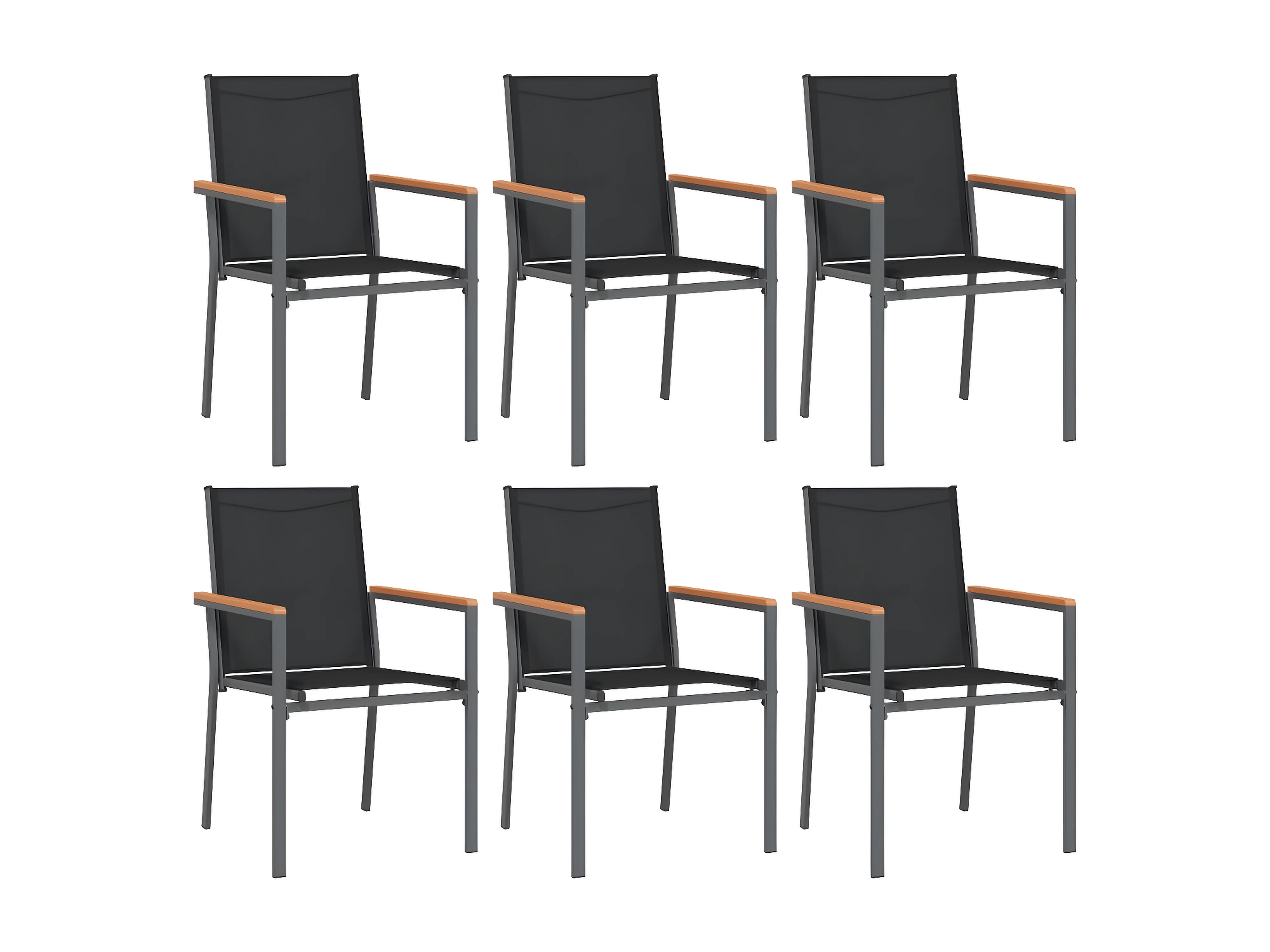 Chaises de jardin lot de 6 noir 55x61,5x90 textilène et acier