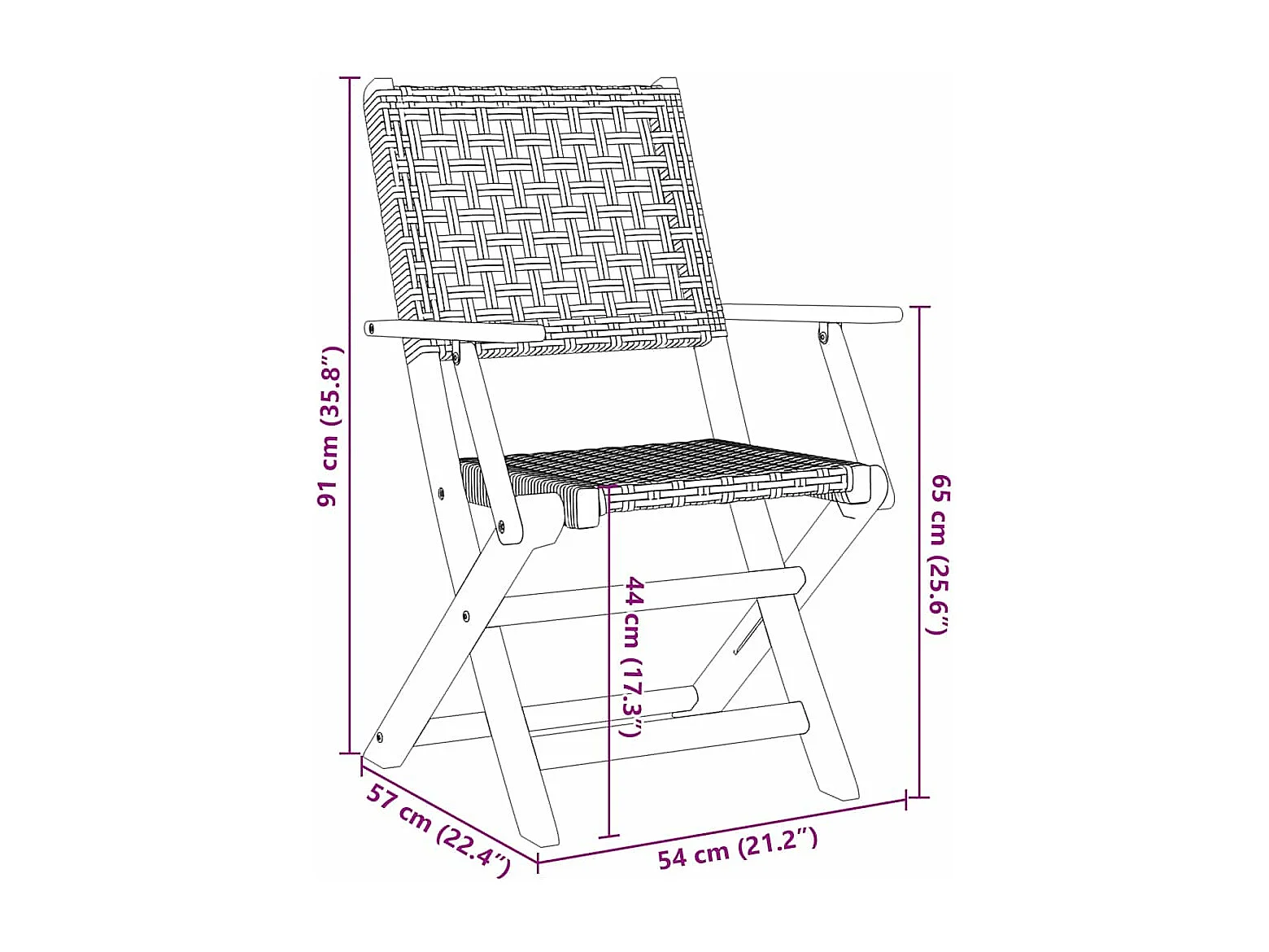 Chaises de jardin pliantes lot de 8 noir poly rotin bois massif