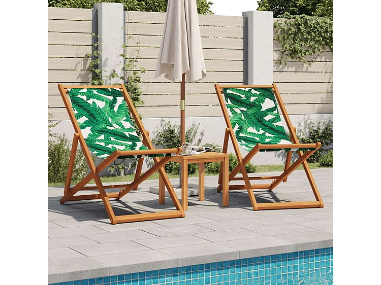 Chaises de plage pliantes lot de 2 tissu et bois massif
