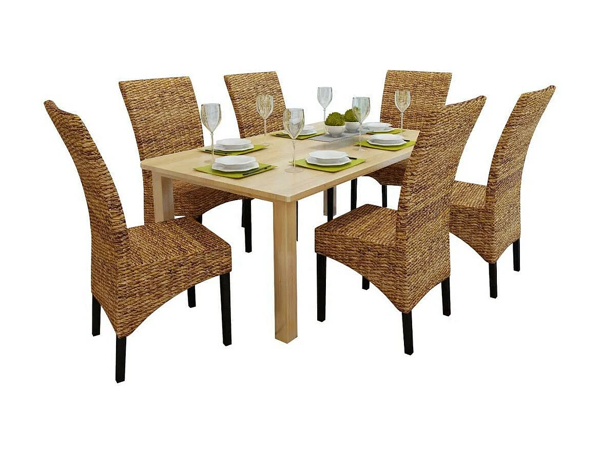 Chaises de salle à manger 6pcs Bois solide de manguier et abaca