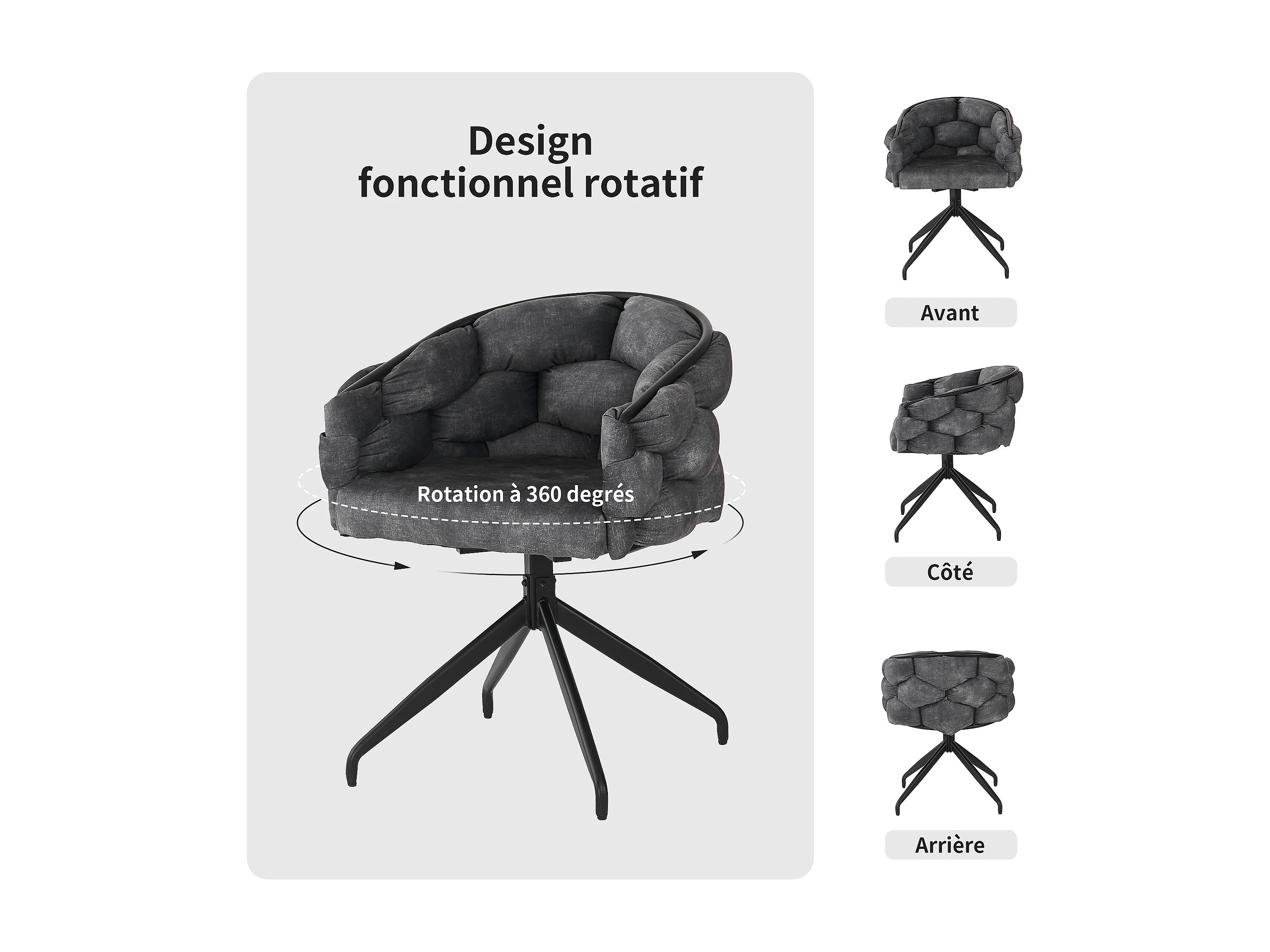 Chaises de salle à manger en velours de luxe, lot de 2, chaise pivotante, rotative à 360°, chaises de salle à manger avec dossier, gris
